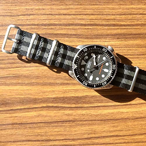 Ballistic Nylon Military Watch Strap Black Gray Stripe Band 20mm Japan