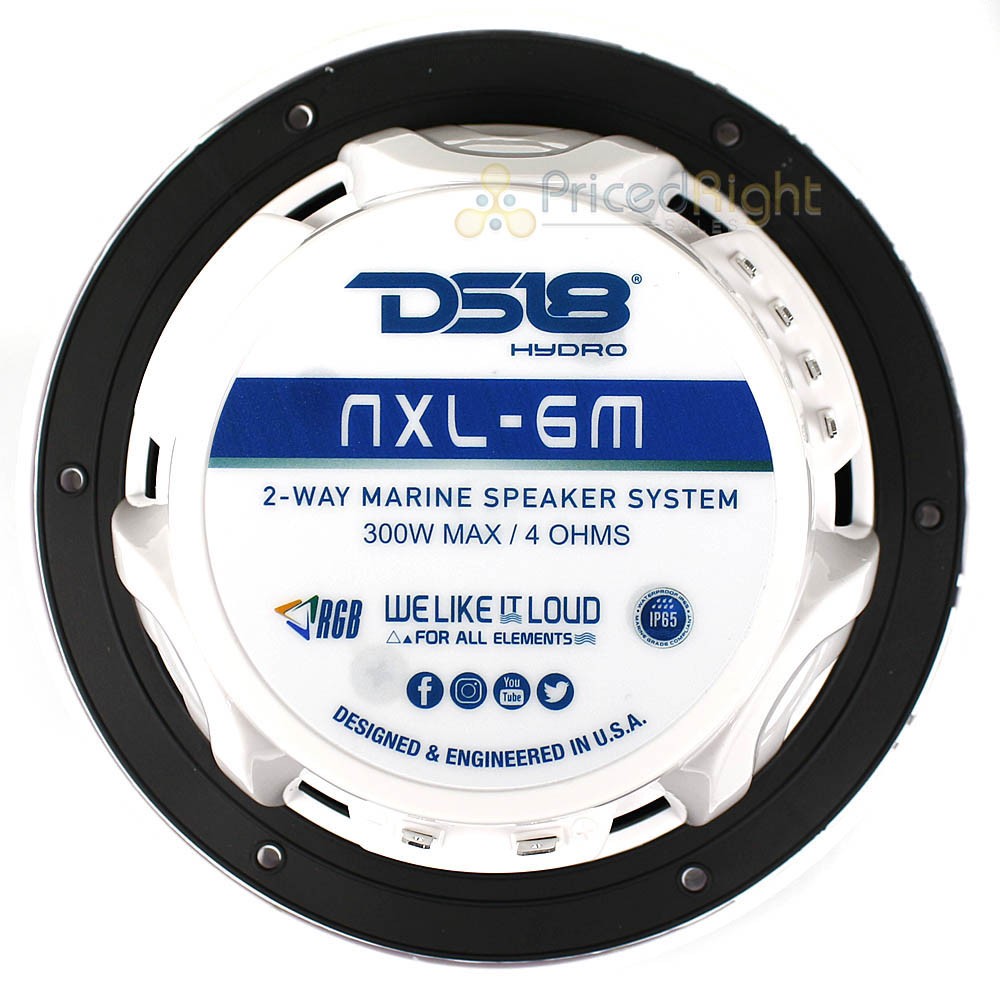 DS18 6.5 Marine Speakers Integrated RGB LED lights 300 Watts White NXL-6M/WH