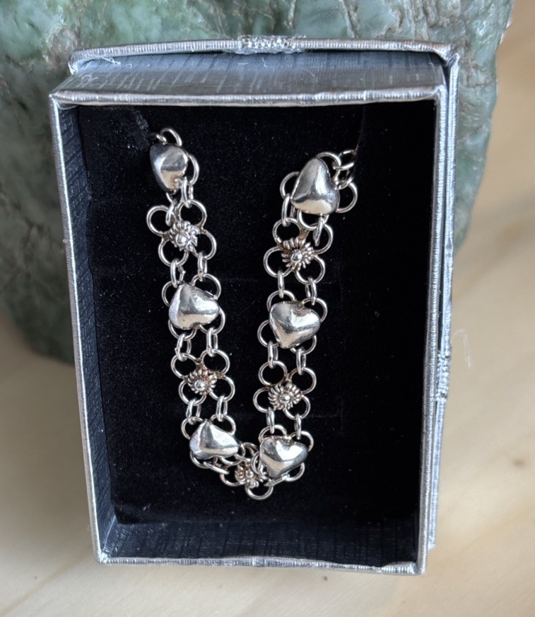как выглядит 925 Sterling Silver Petite Puffy Heart Link Bracelet 7-1/2 Inches 6g фото