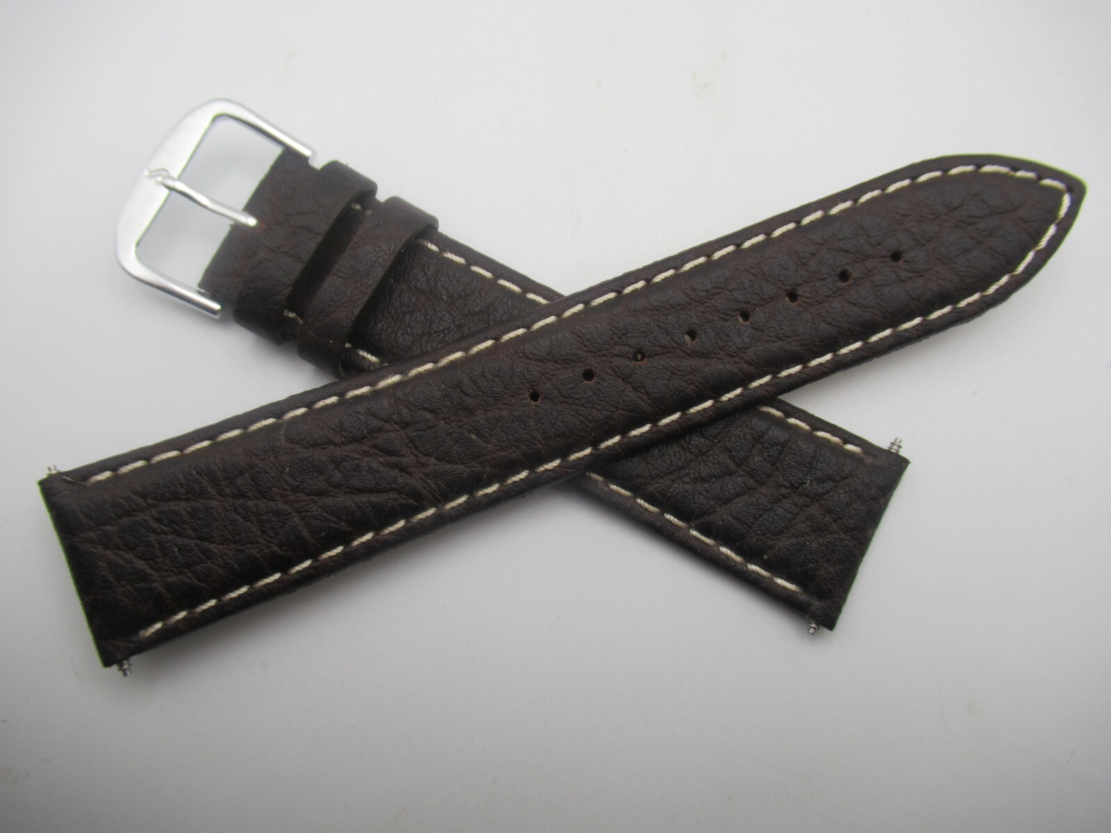 как выглядит 22MM Long Genuine Sport Calf Mens Brown Watch Band фото