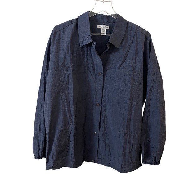 Athleta NWOT Lunar Sheen Button Up Shirt Jacket Size Medium Gray Blue