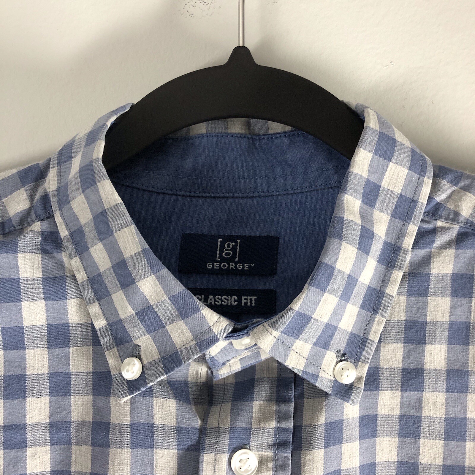 как выглядит George Classic Fit Mens Size Small 34-36 Gingham Gray Blue Button Down Shirt фото