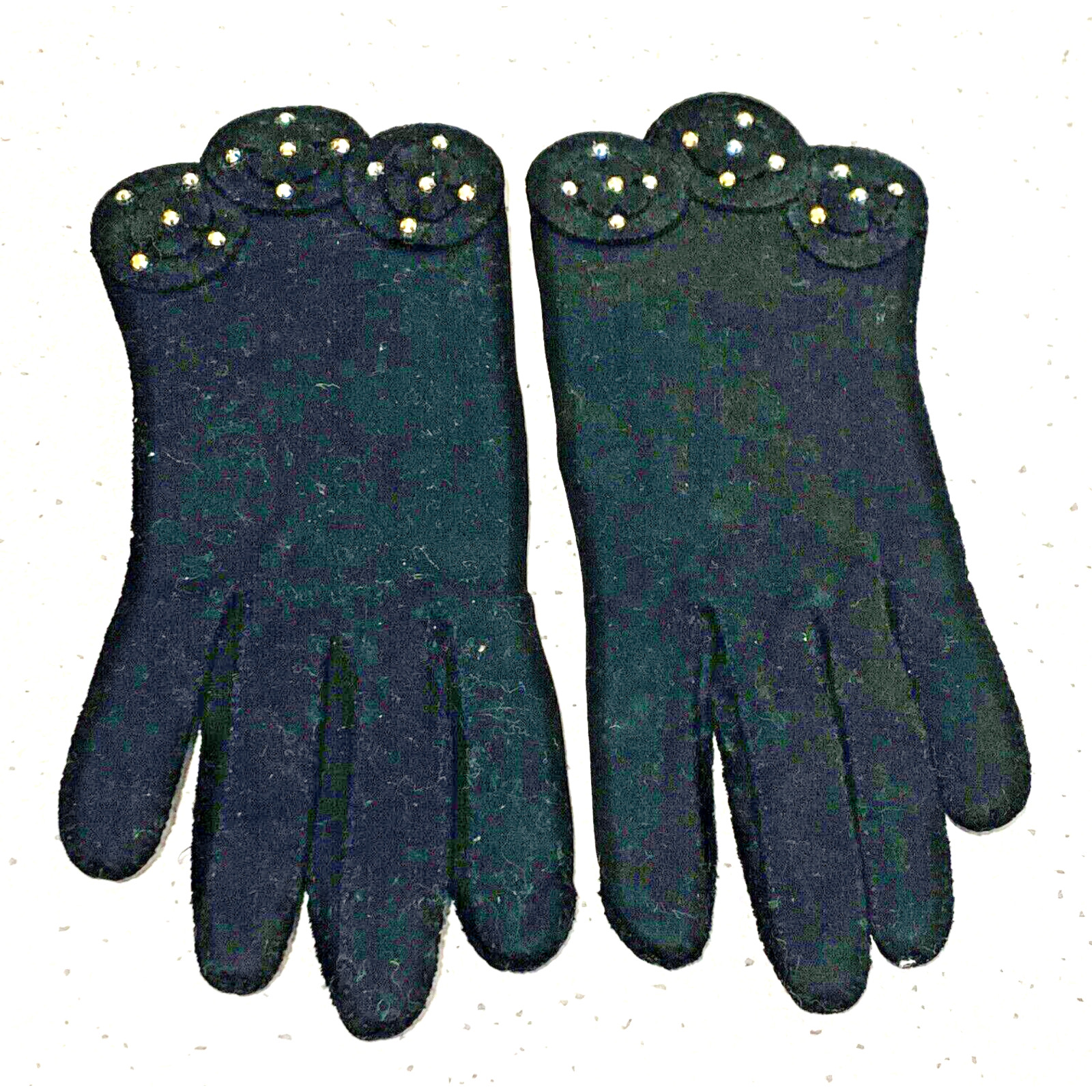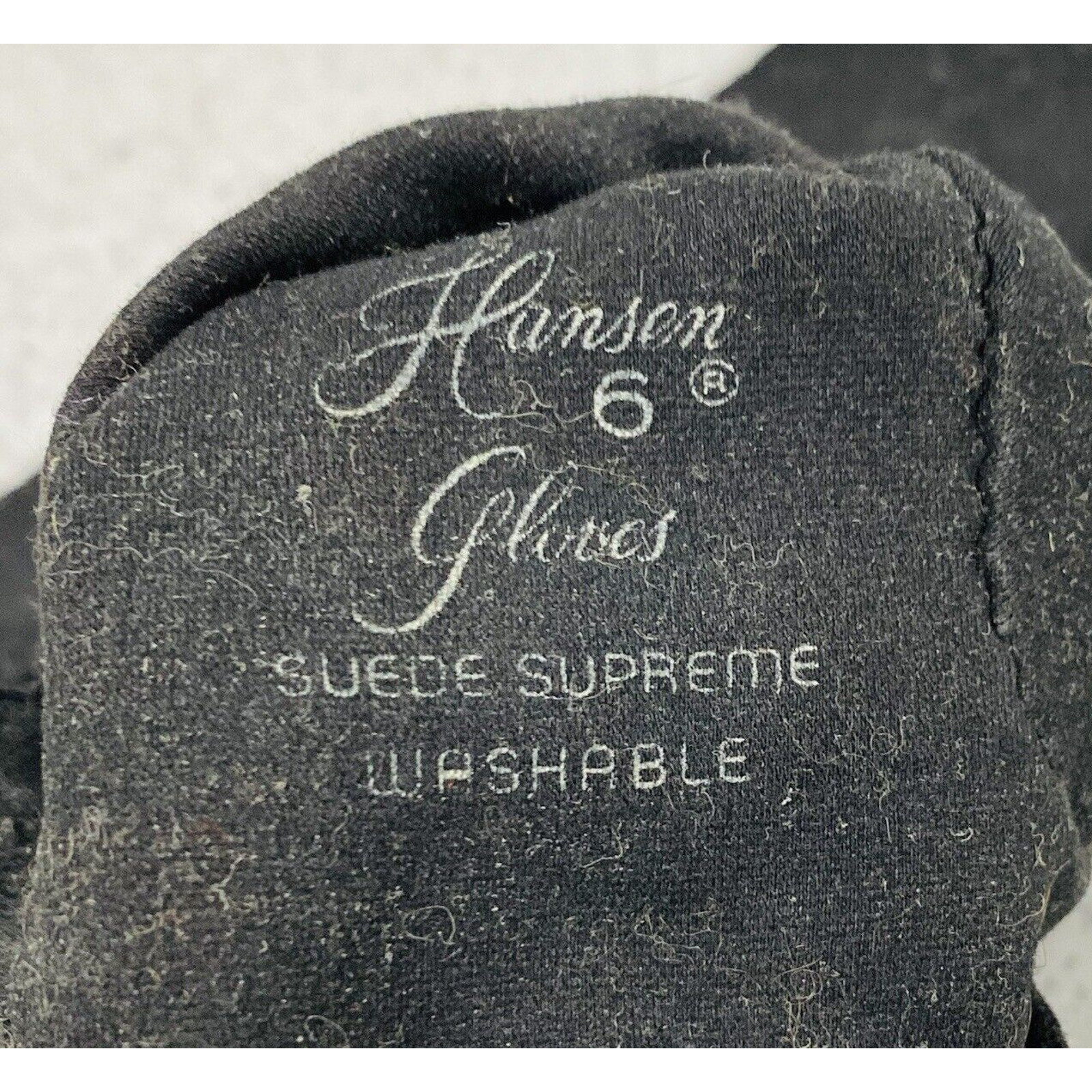 как выглядит Vintage Ladies Dressy Black Suede Gloves White Rhinestones Hansen 6 Wrist Length фото