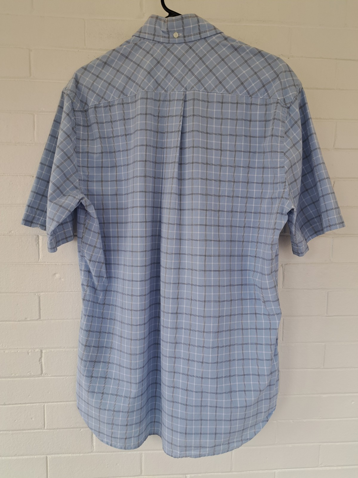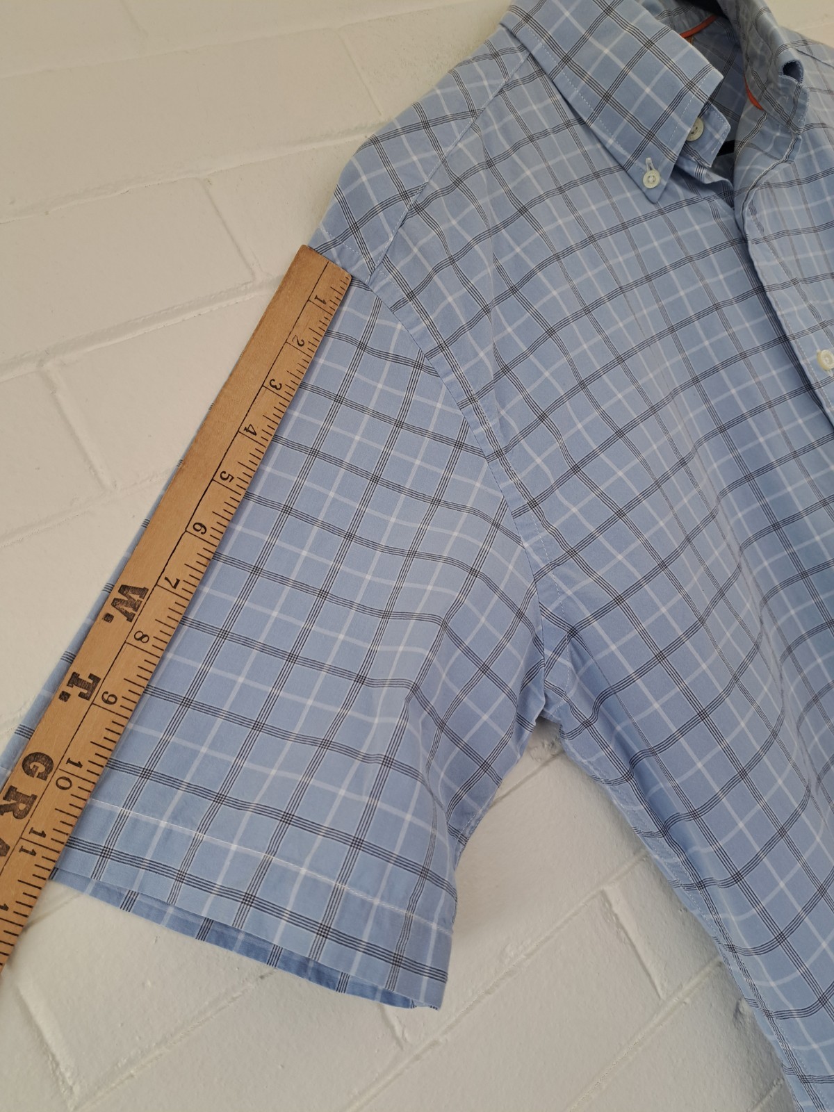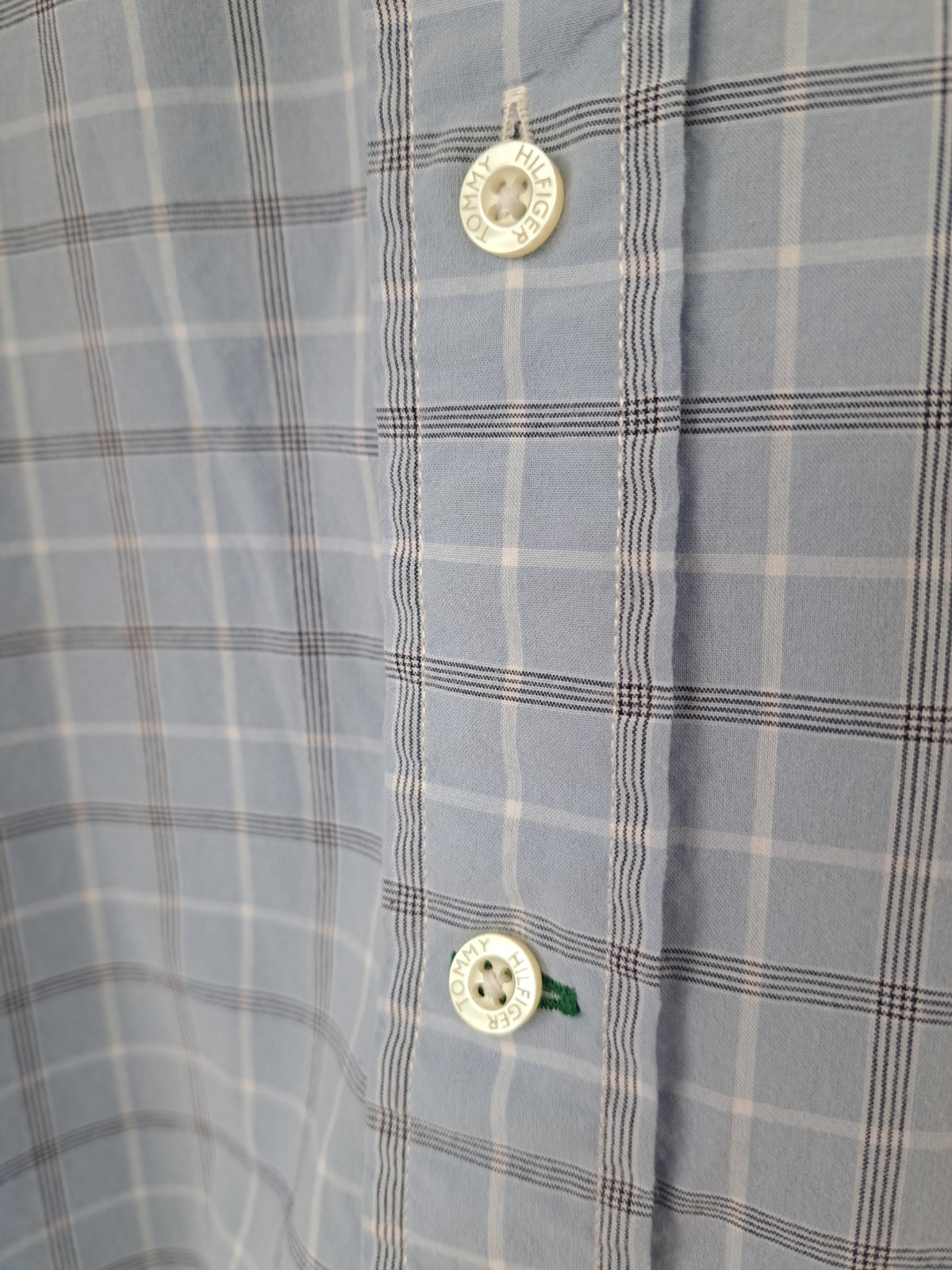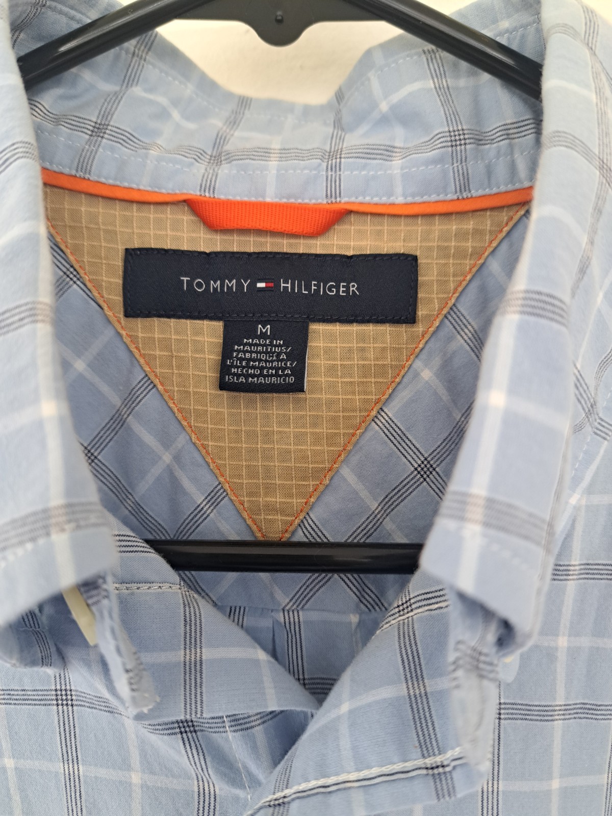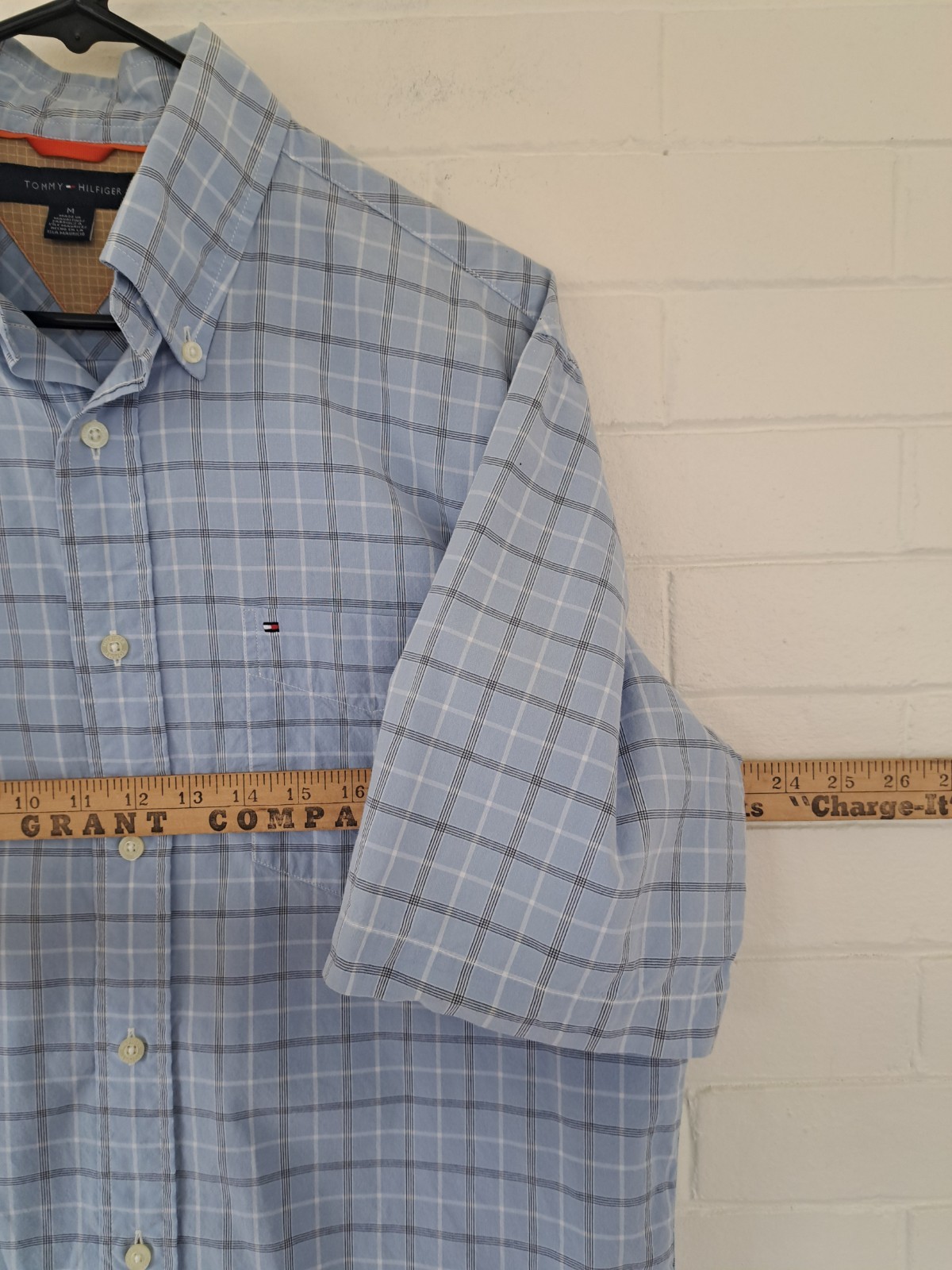 Tommy Hilfiger Men's Blue Plaid Button Up Short Sleeve Shirt Size Medium Casual