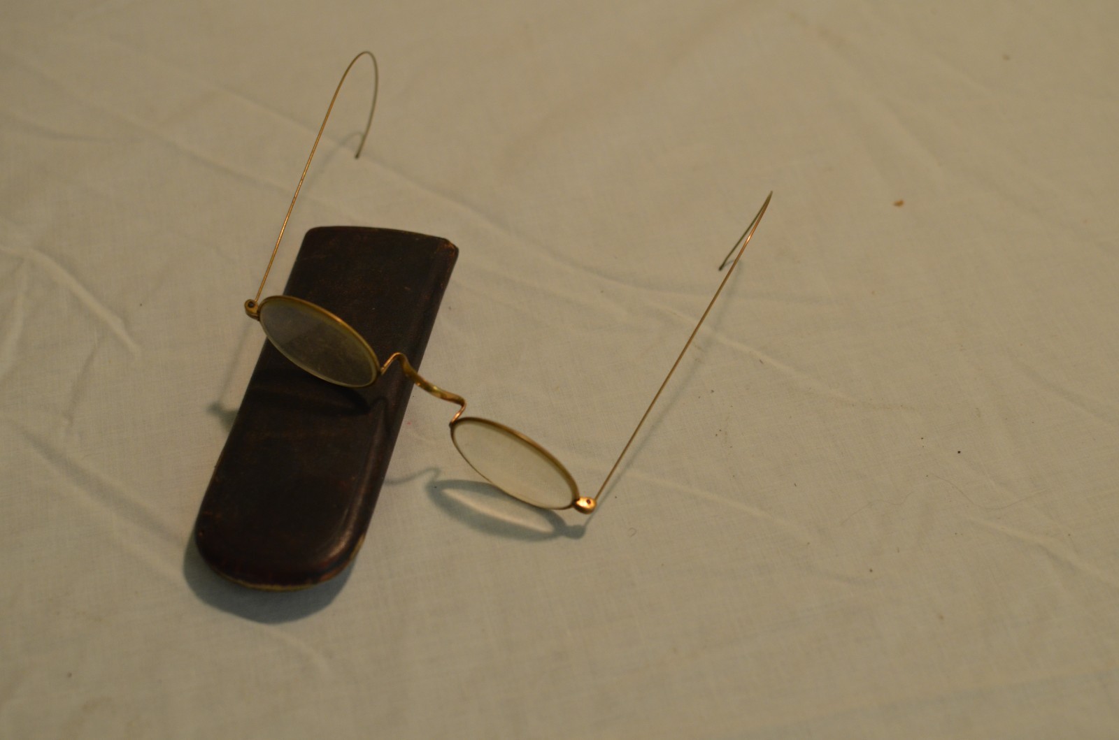 Vintage eyeglasses wire Murine sturdy gilded leather case reading Home Eye Gold