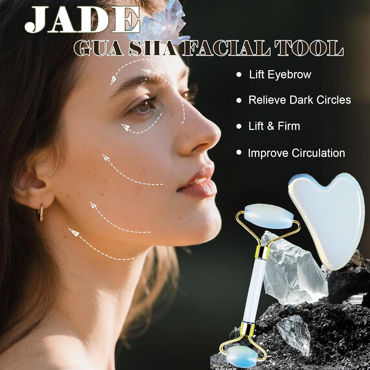 Jade roller and gua sha, facial roller, women's skincare tool, self-care gift, f