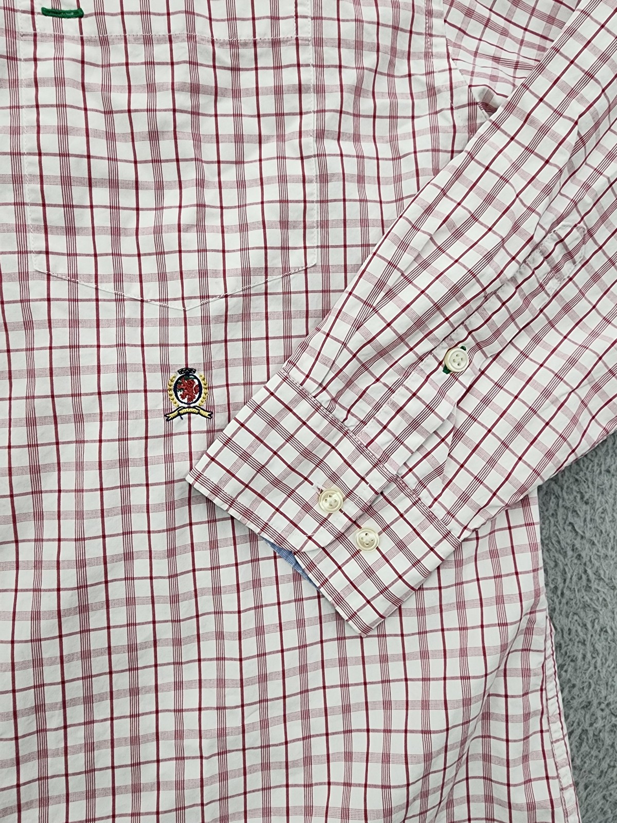 Tommy Hilfiger Button Up Shirt Mens Large Red White Check Long Sleeve Classic