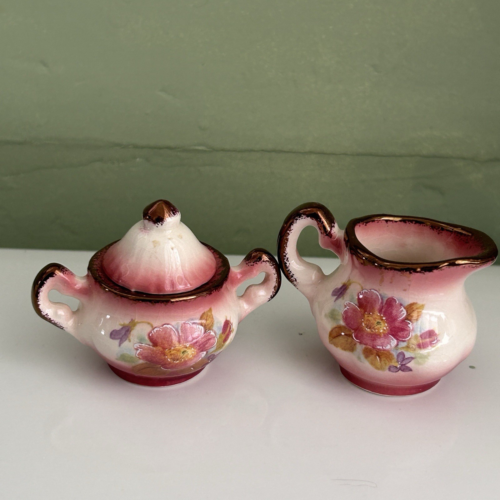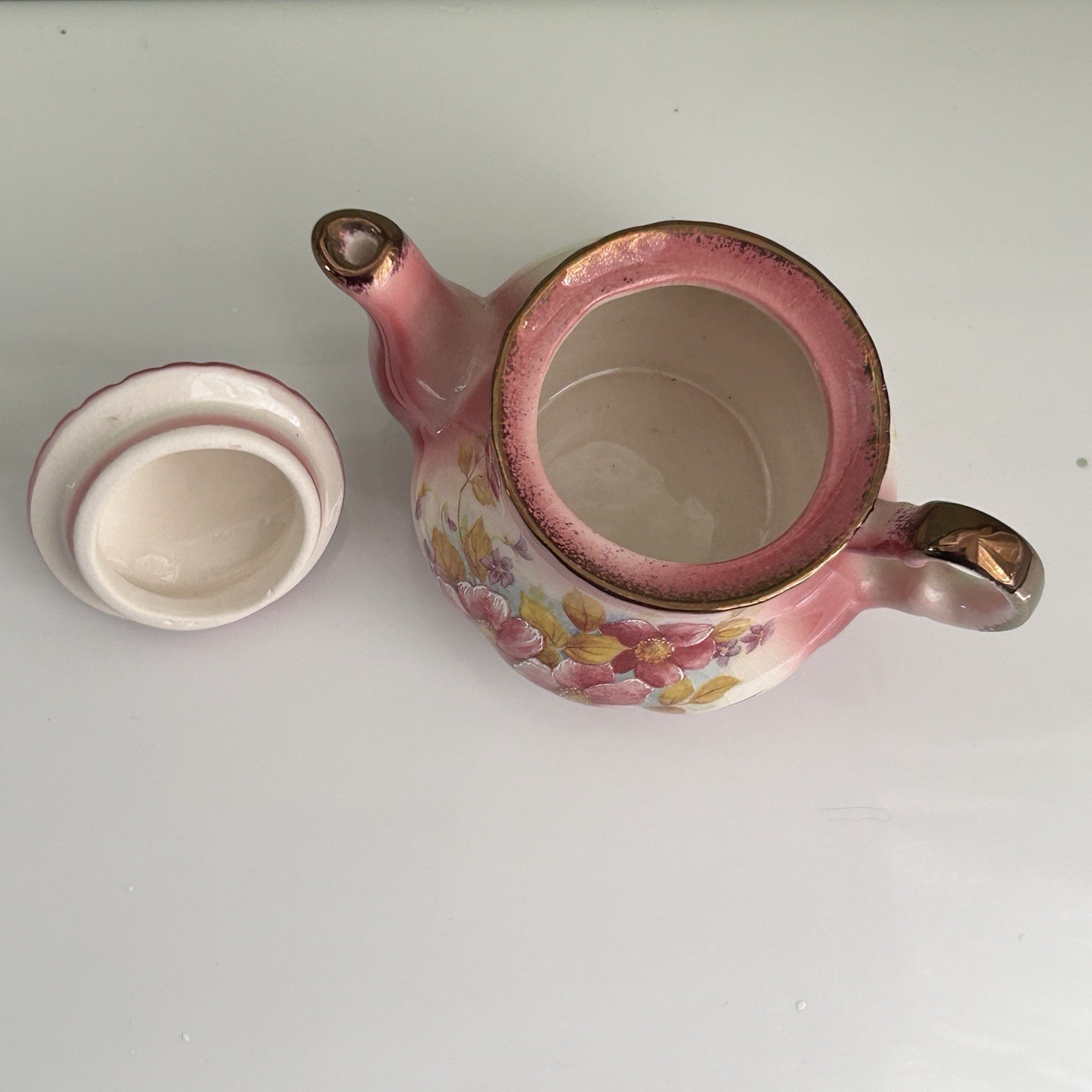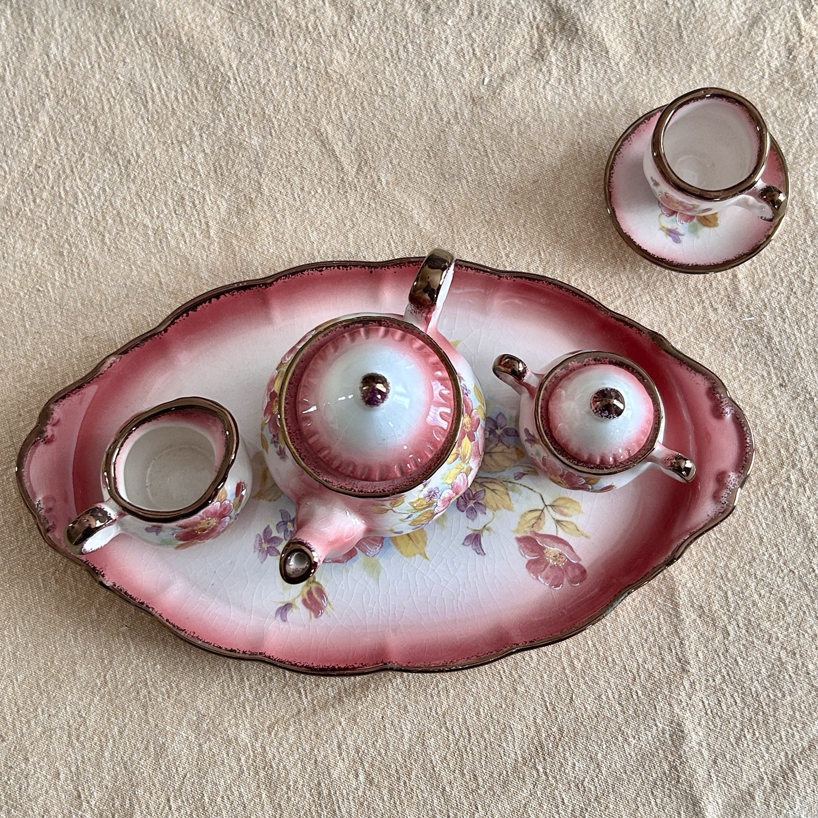 Vintage Miniature Tea Set Pink With Flowers And Luster Trim O