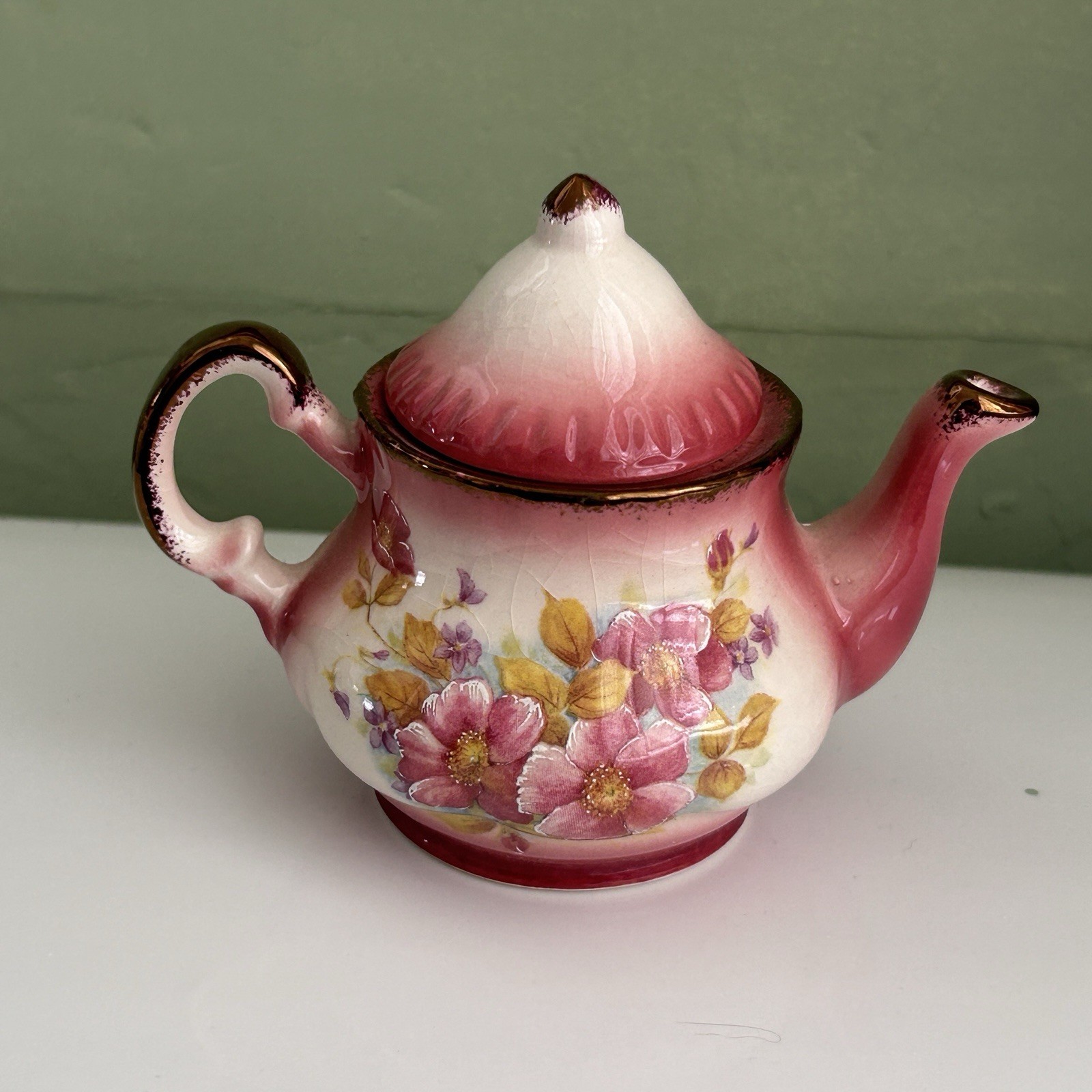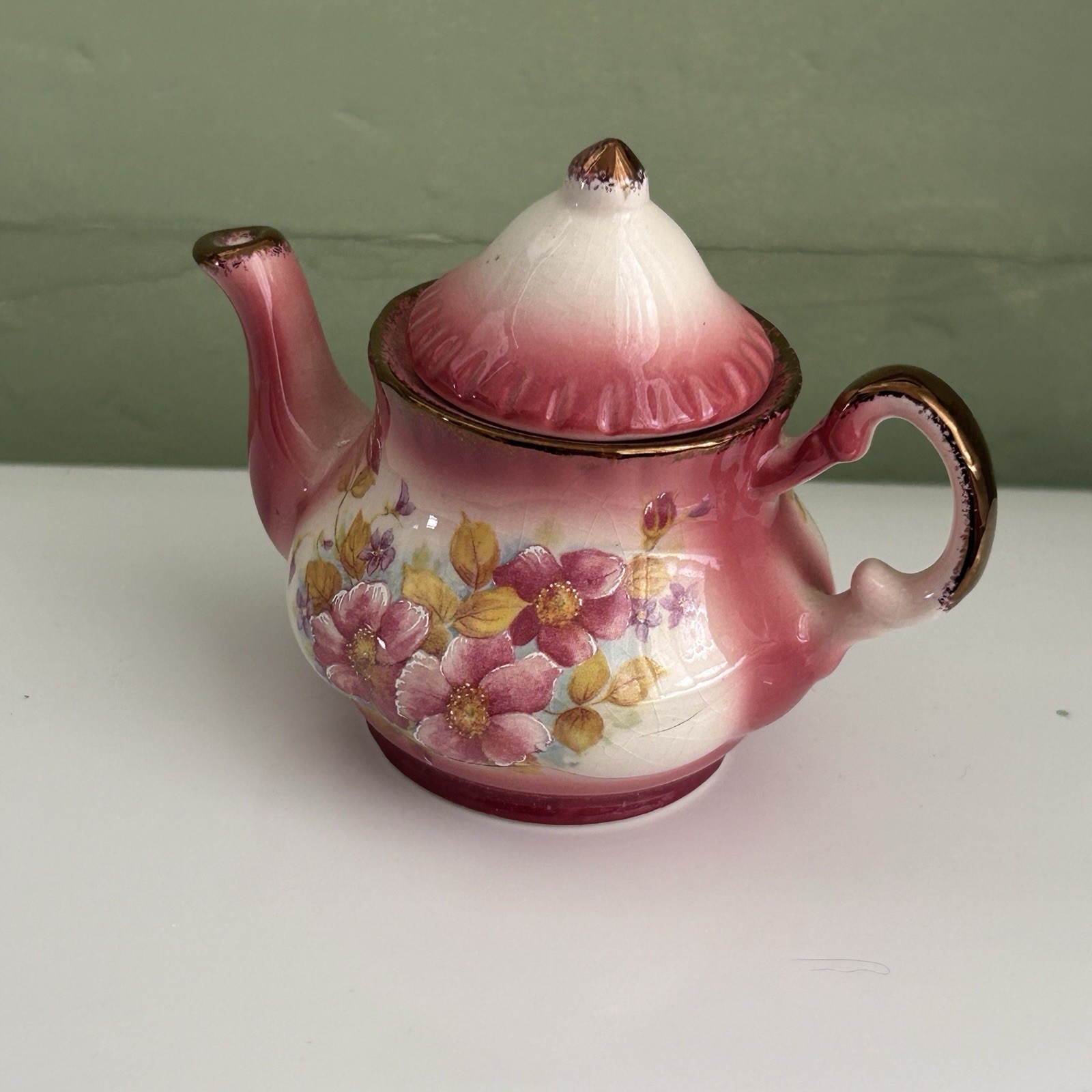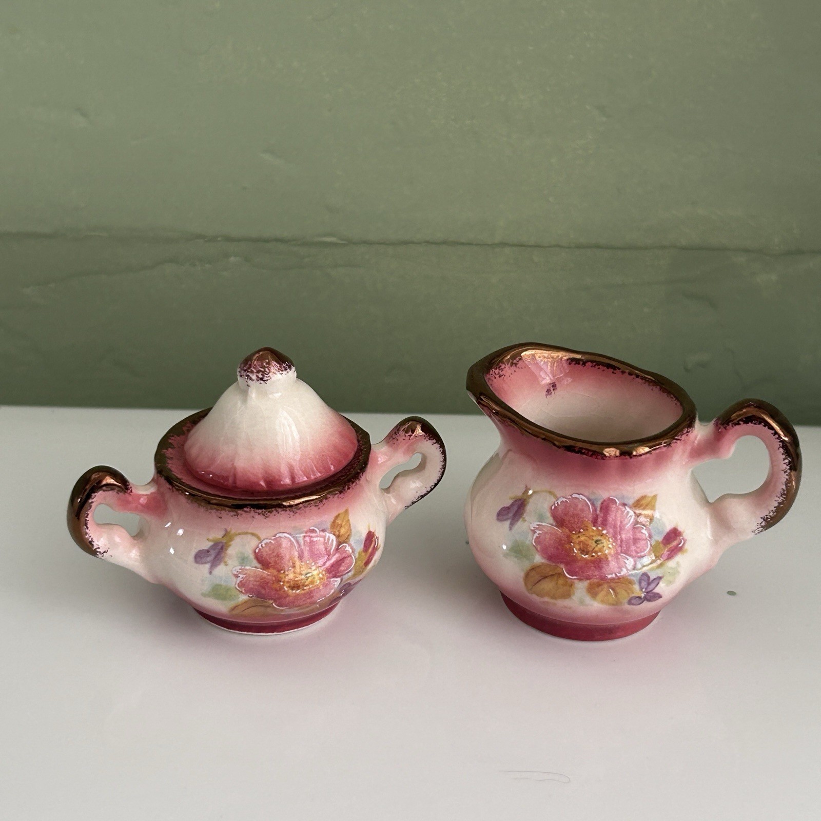 Vintage Miniature Tea Set Pink With Flowers And Luster Trim O
