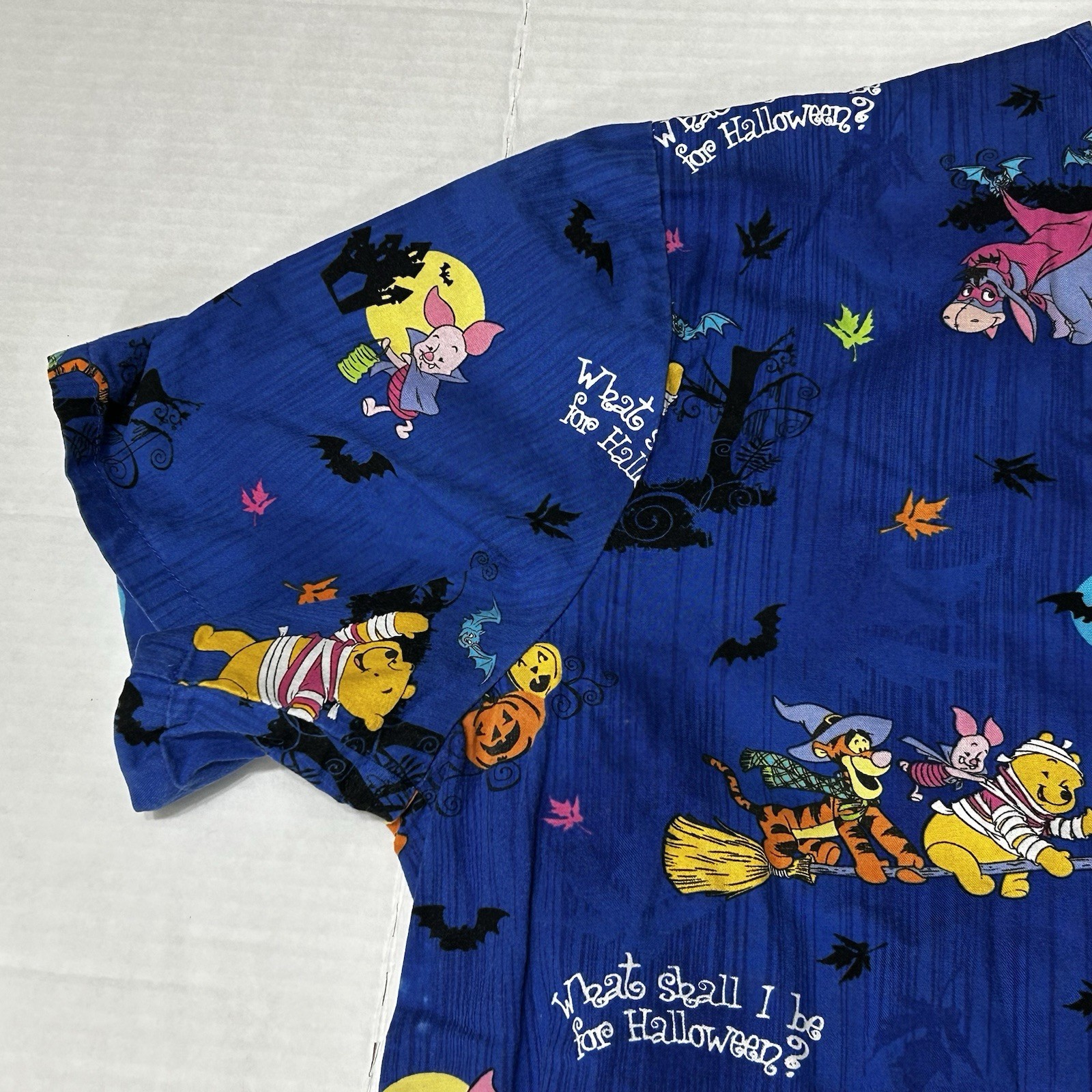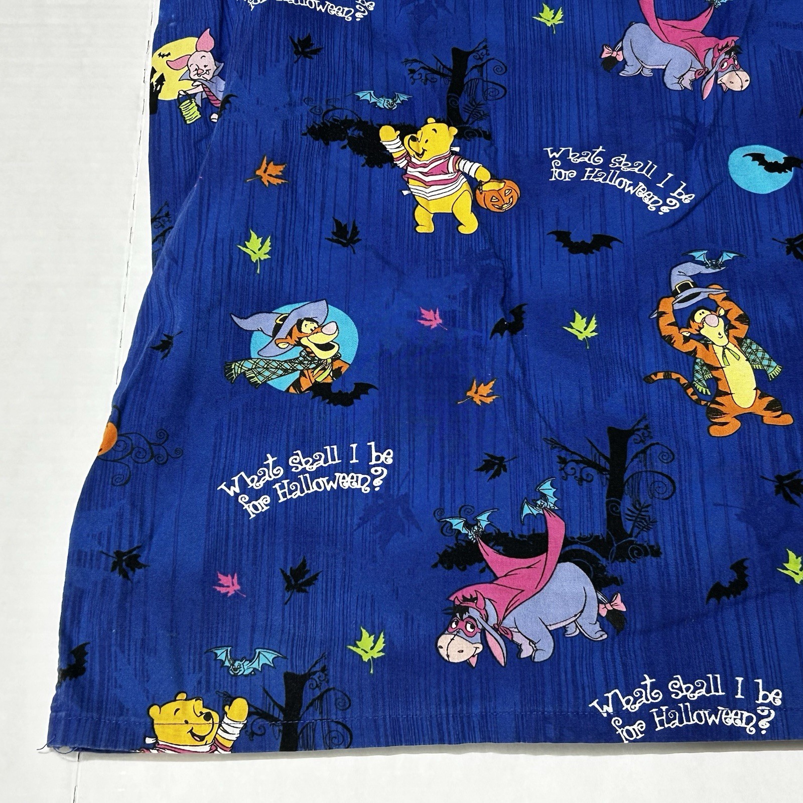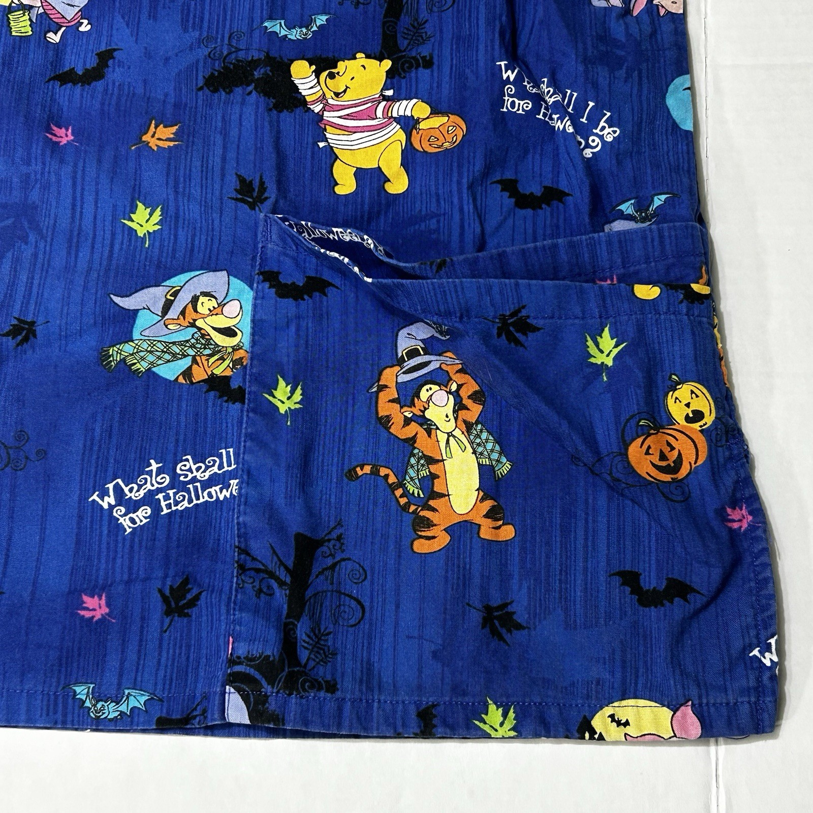 WINNIE THE POOH Womens Scrub Top Large Blue Halloween Eeyore Piglit Tigger Nurse