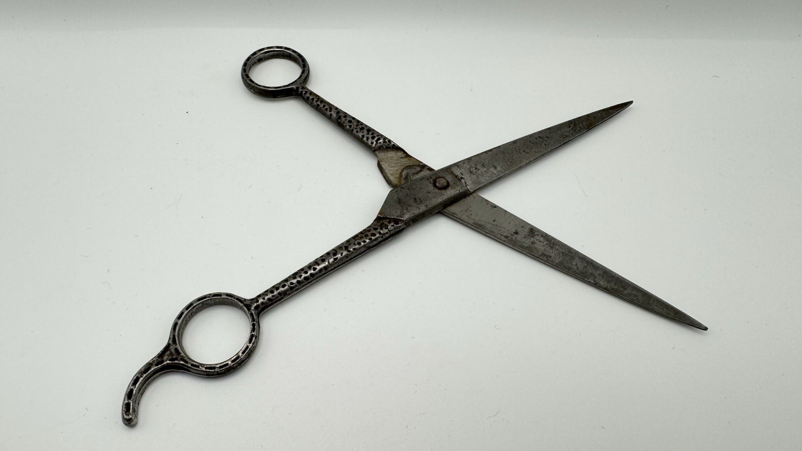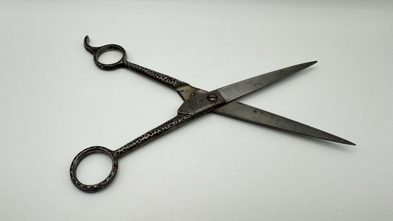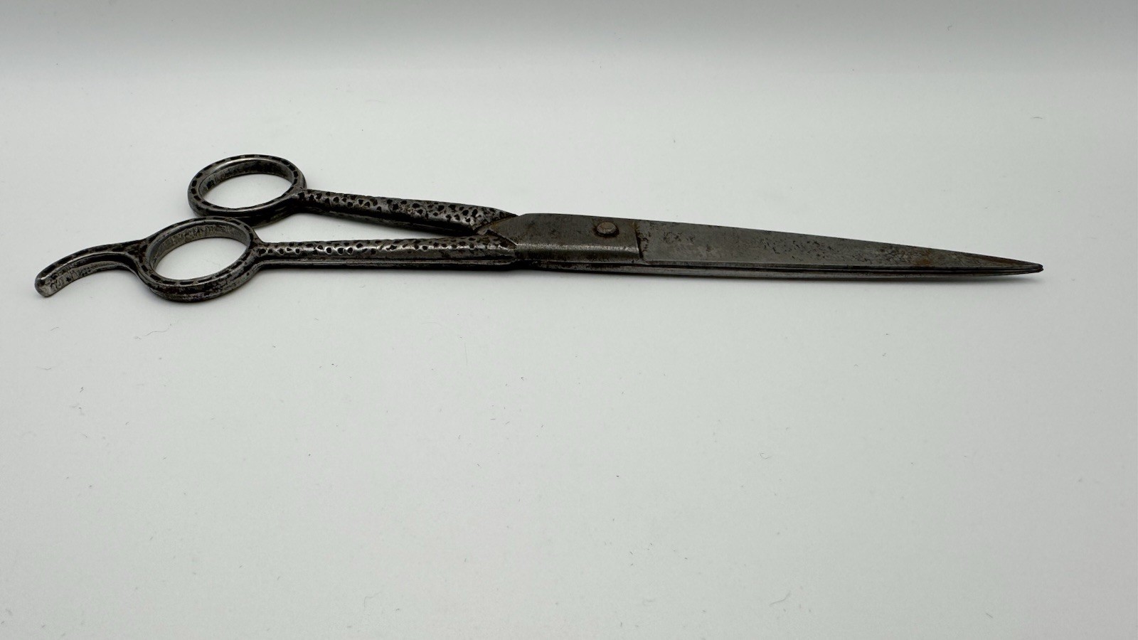 как выглядит Vintage Hair Cutting Scissors - Barber Shears 7 1/2 Dimpled Forged Carbon OLD фото