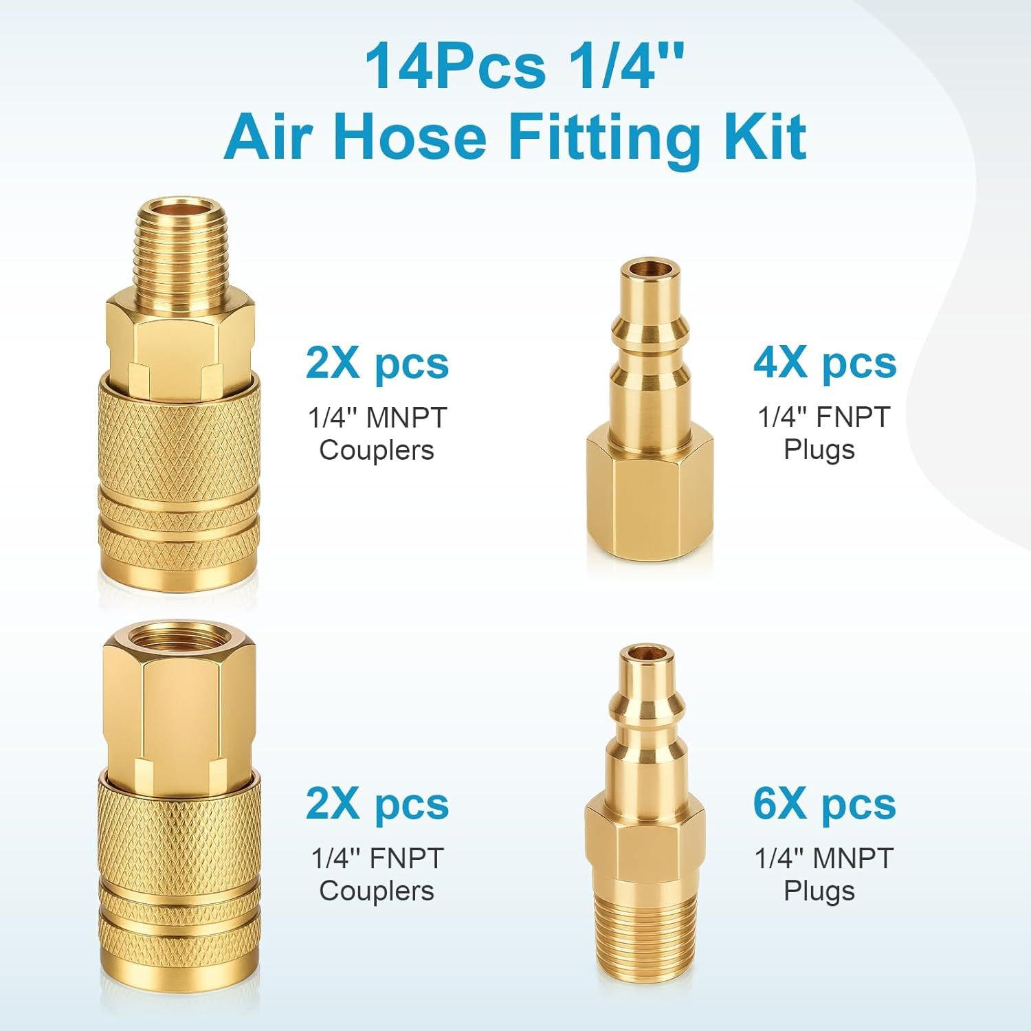 14pcs Air Hose Fittings, 1/4 NPT Quick Connect Air Coupler and Plug Kit Red