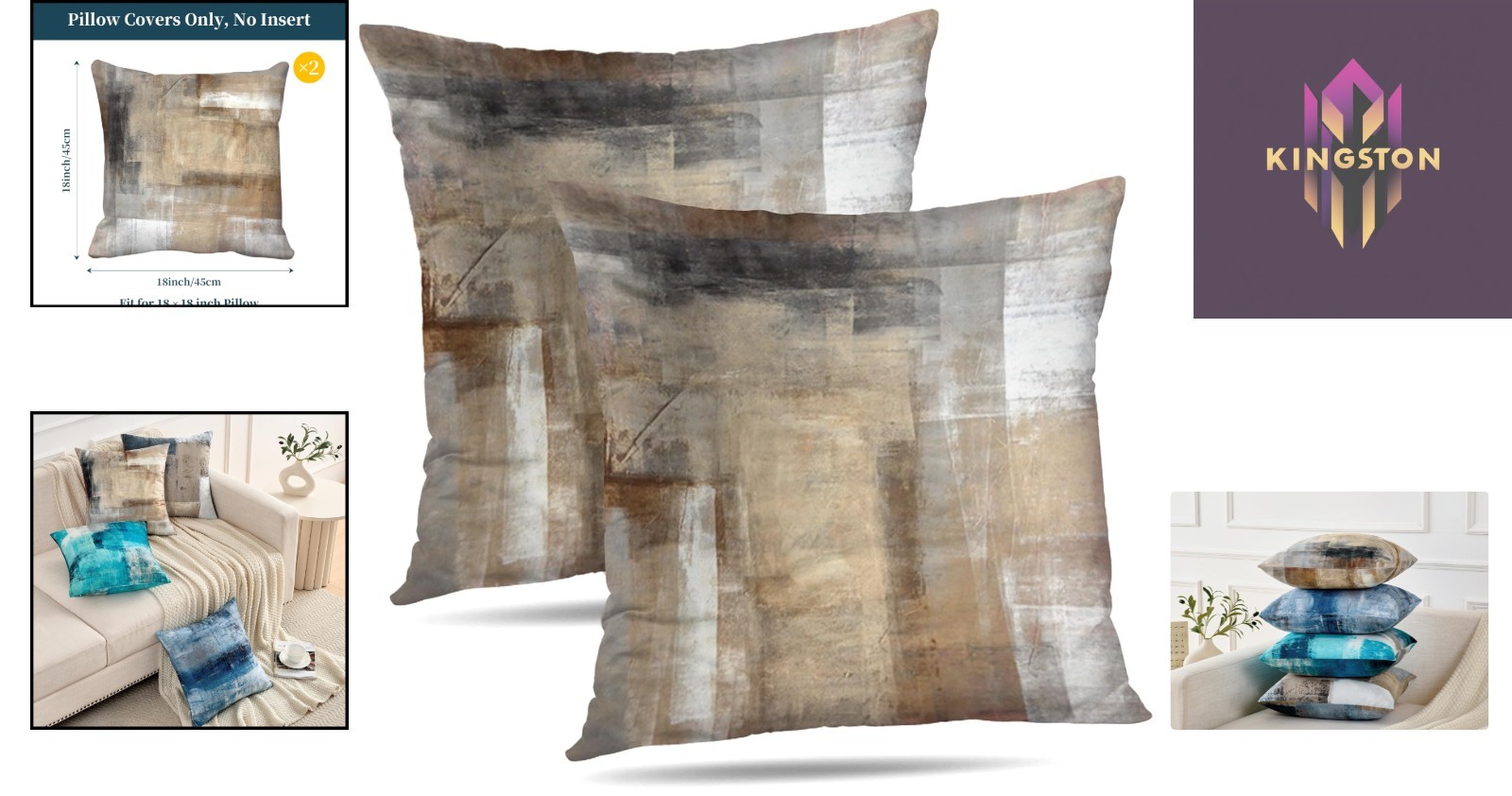 Versatile 18 Square Pillow Covers - 2 Pack Abstract Design for Any Room