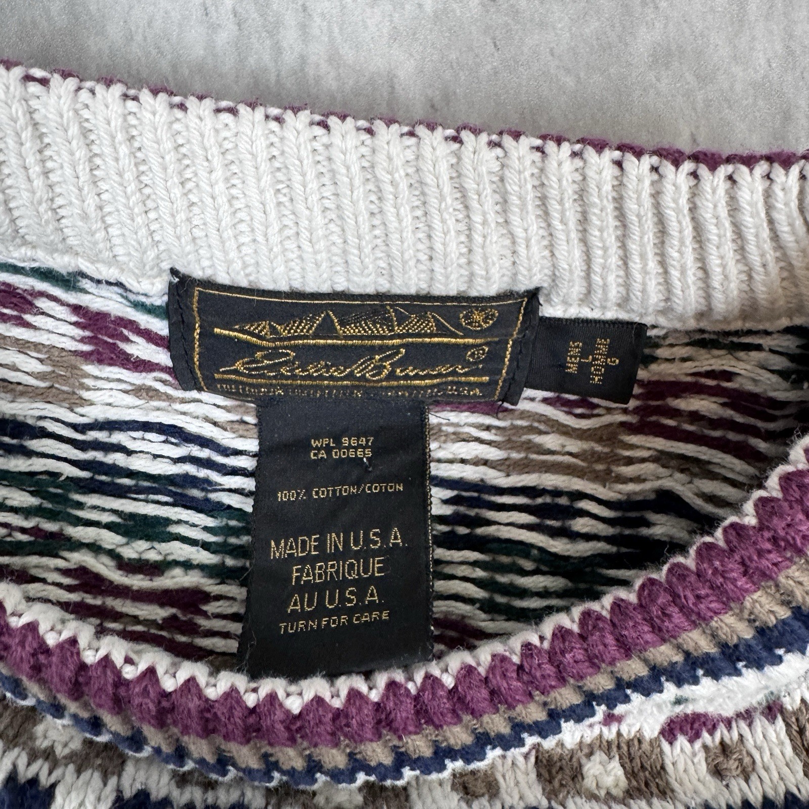 Vintage Eddie Bauer Sweater Men s Large Geometric Knitted Ugly Pullover Cotton