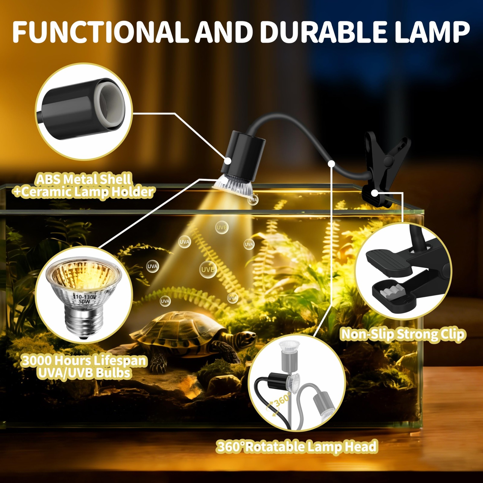 Reptile Heat Lamp,Turtle Light with Timing Dimming Cycle Timer,Basking Turt...