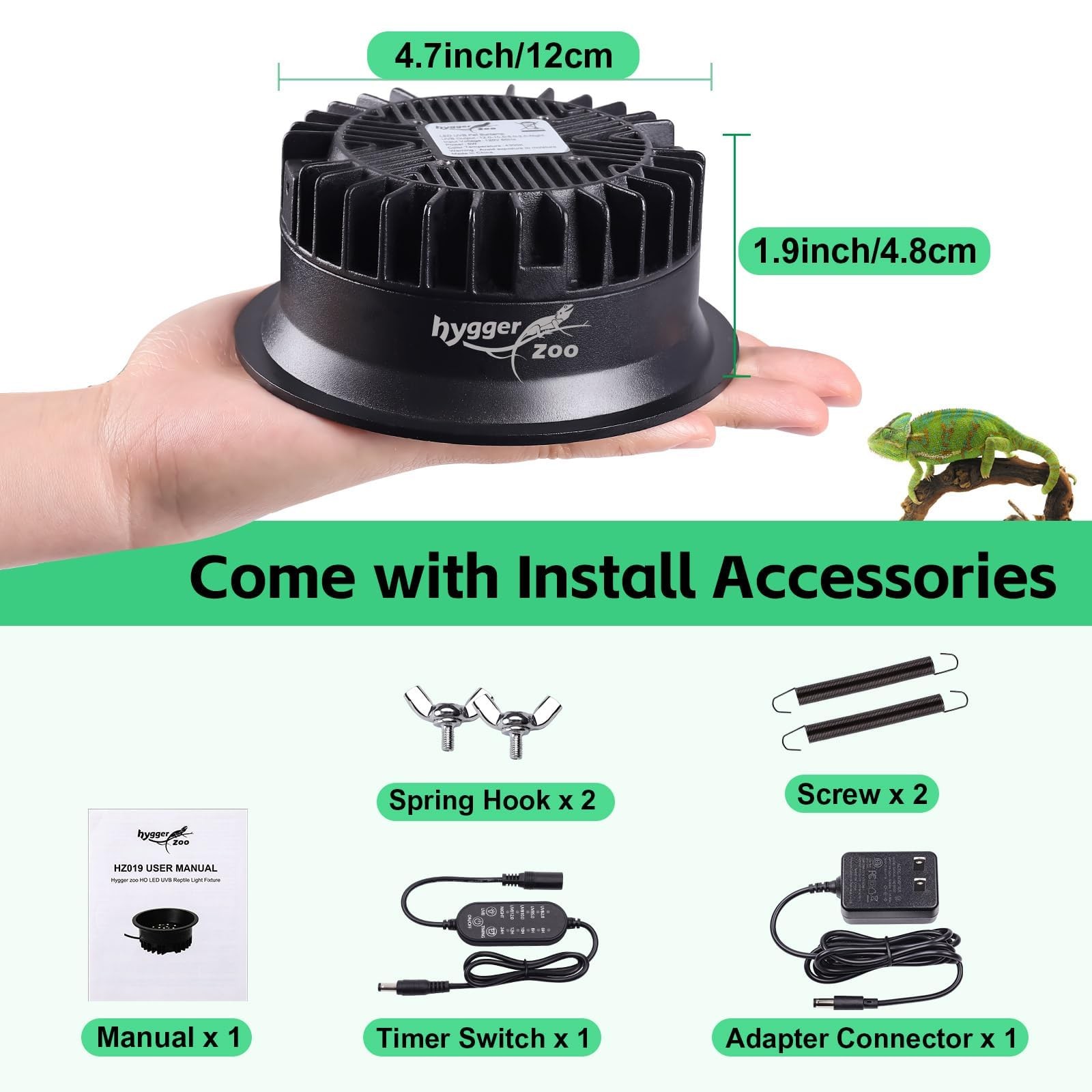 как выглядит UVB Light for Reptiles, UVA UVB Reptile Light Fixture with Timer LED UVB Bulb... фото