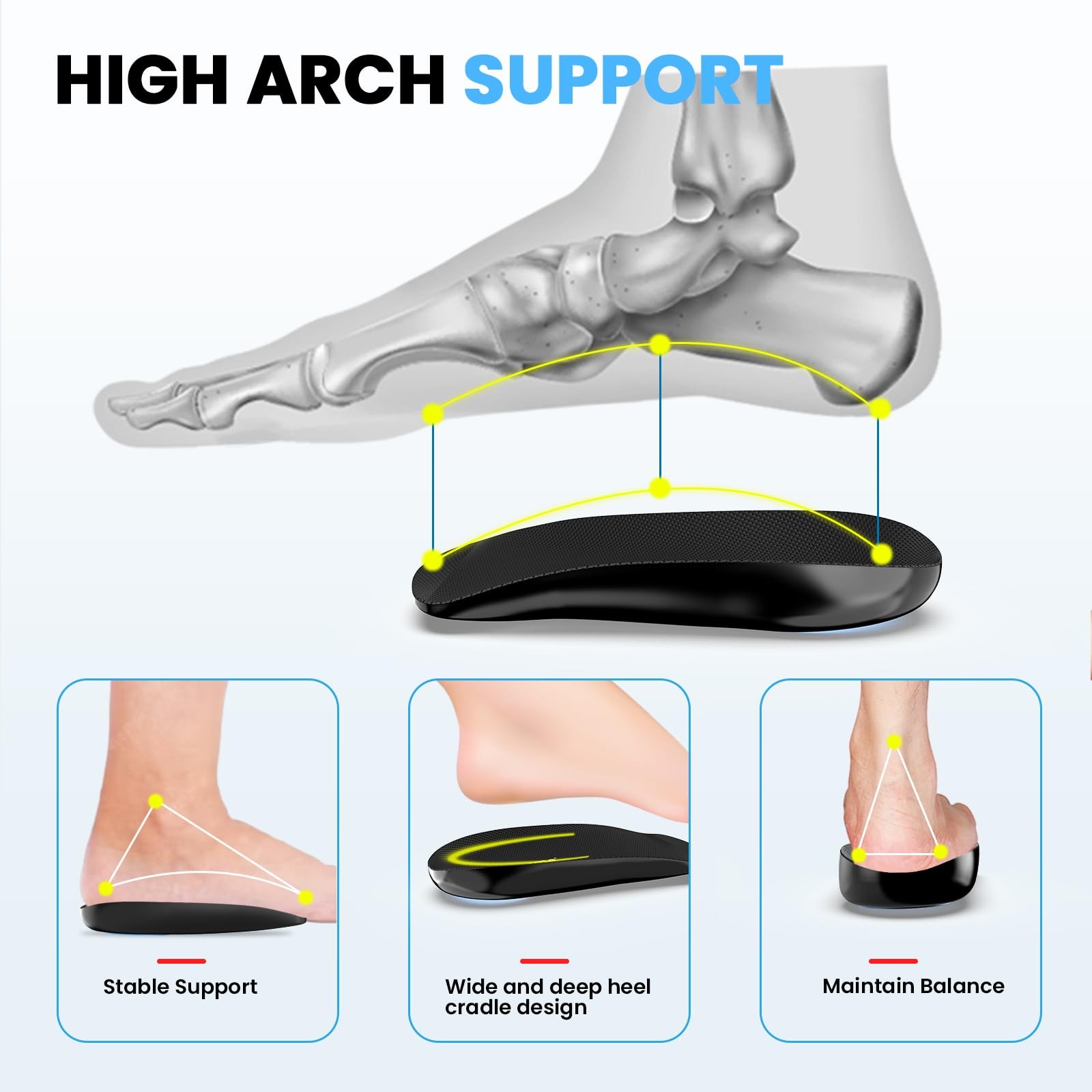 Plantar Fasciitis Relief Insoles - 3/4 Anti-Slip Arch Support Shoe Inserts ...