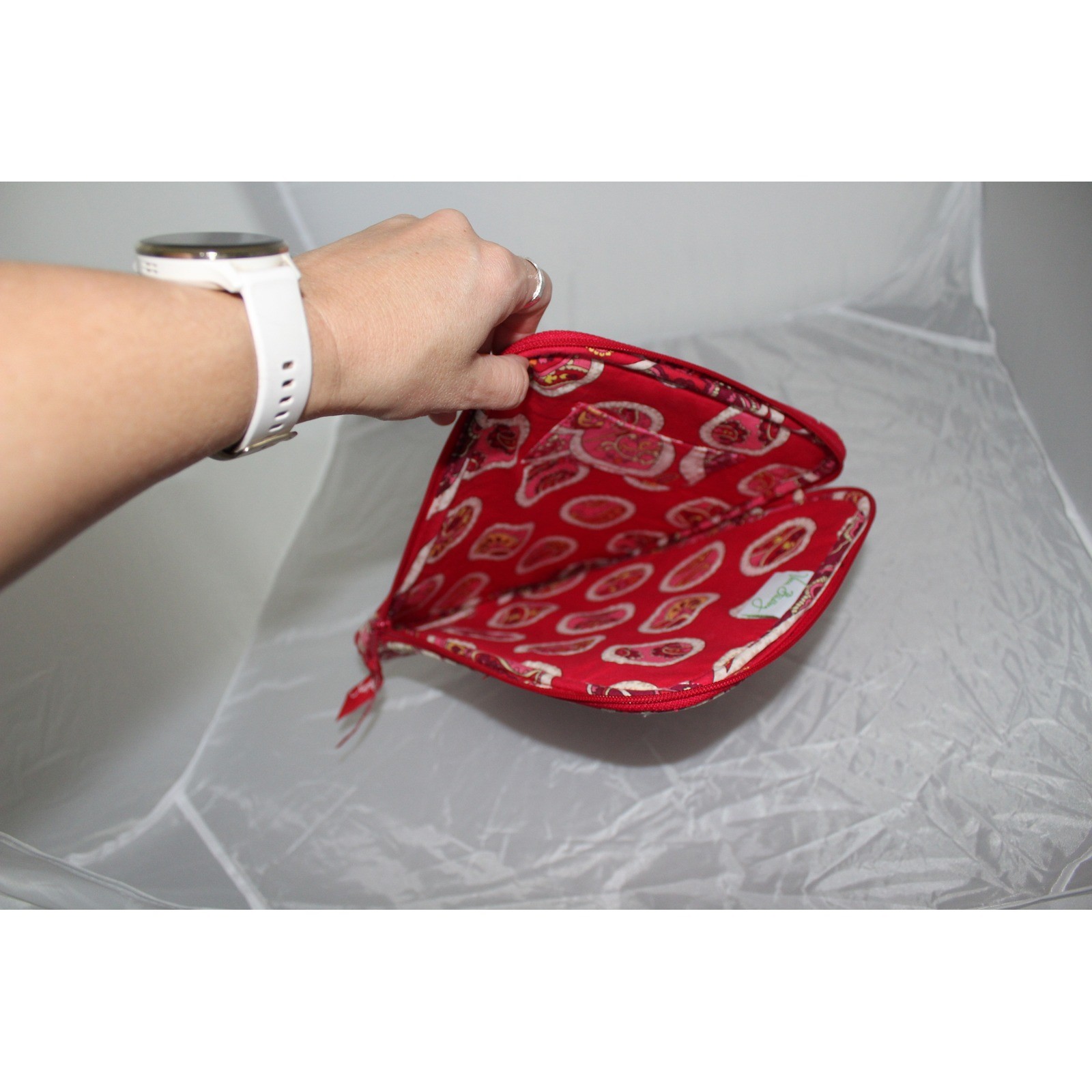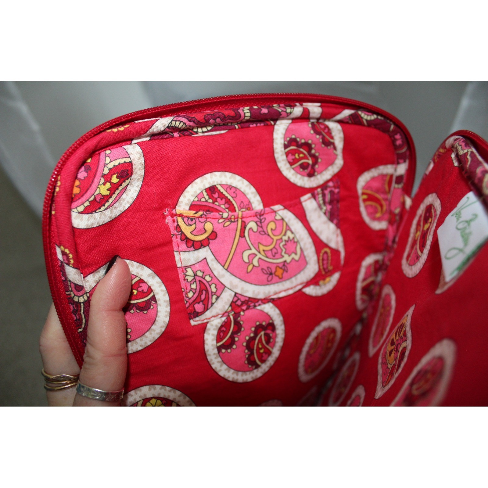 как выглядит Vera Bradley Rosie Posies Tablet e-Reader Pouch Retired 2012 Red Floral Paisley фото