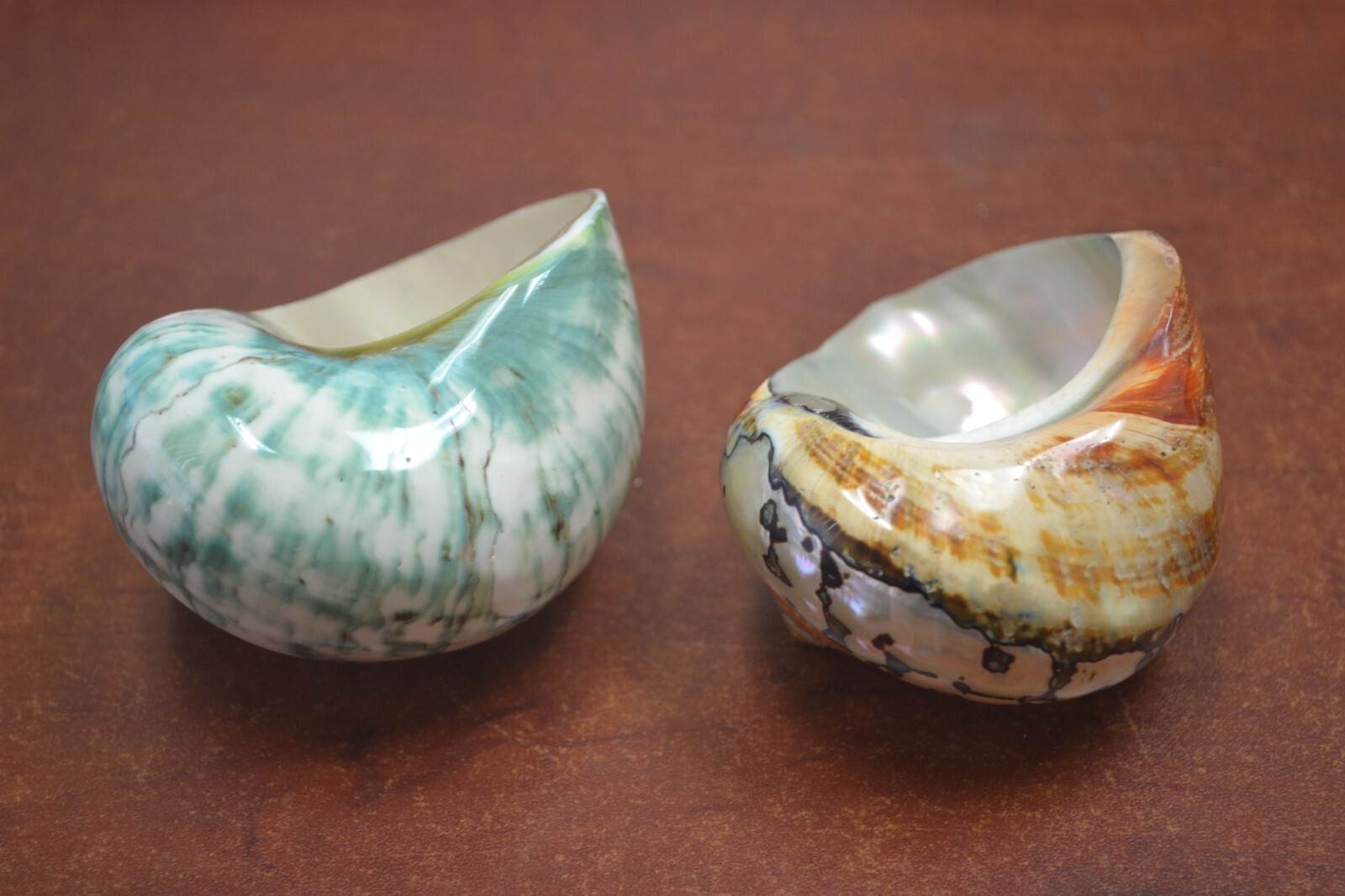 как выглядит 2 PCS GREEN SARMATICUS PEARL TURBO SEA SHELL HERMIT CRAB 2 1/2" - 3" фото
