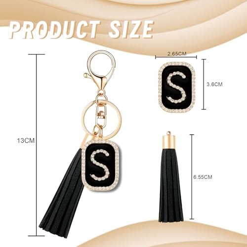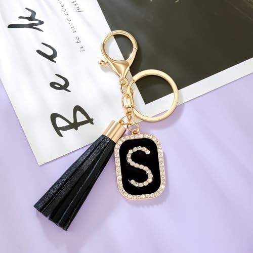 Fashion Cubic Zirconia Crystal Alphabet Initial Letter Keychain Tassel S