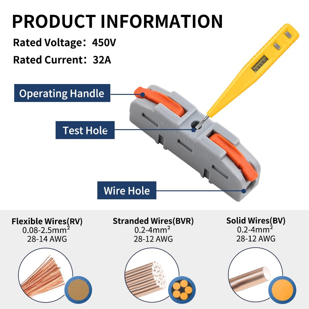 50Pcs Lever Wire Connectors, Conductor Compact Electrical Splicing Wire Nuts Con