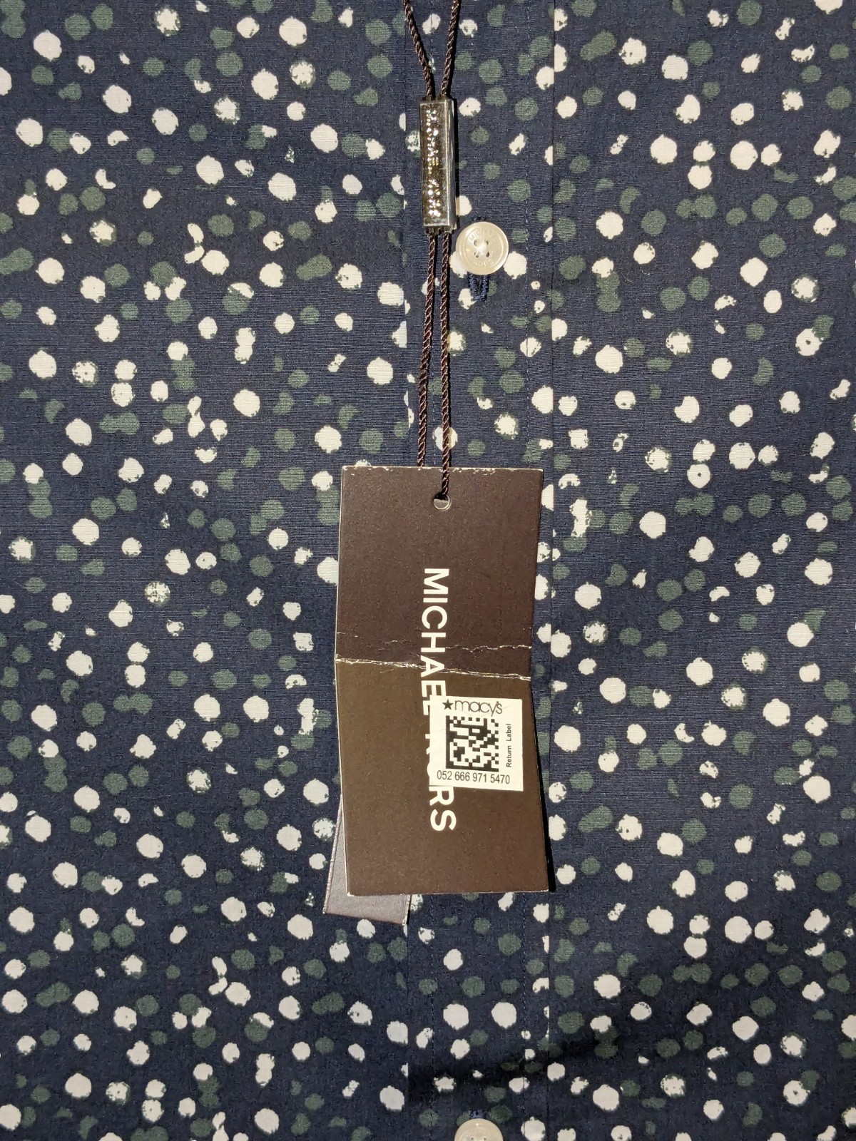 как выглядит NWT Michael Kors Midnight Dot Print Shirt Mens LS Trim Stretch Button Up - M фото