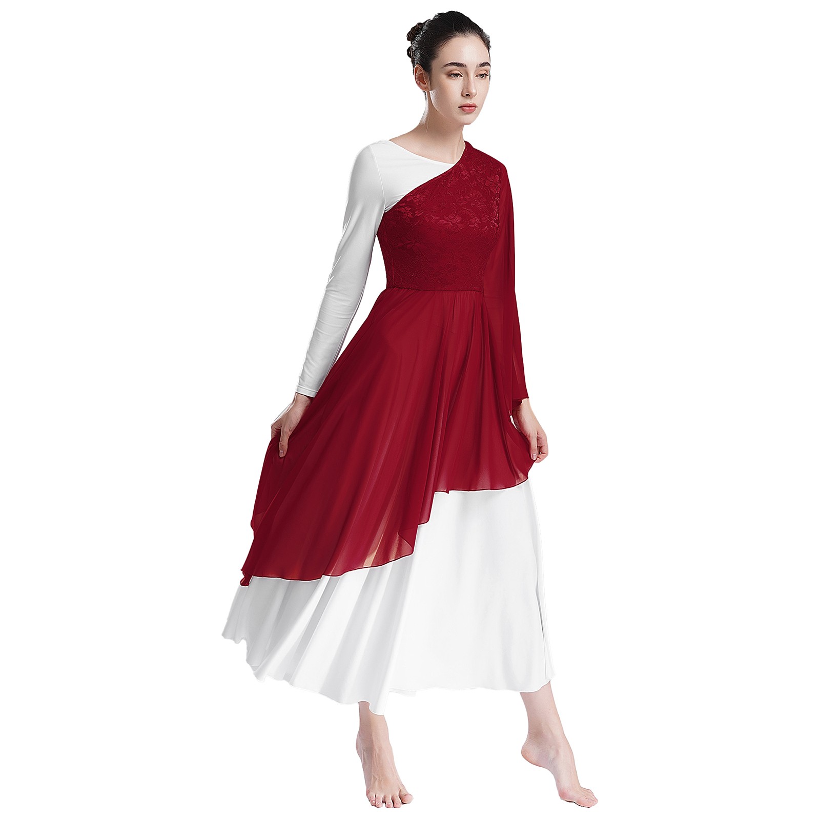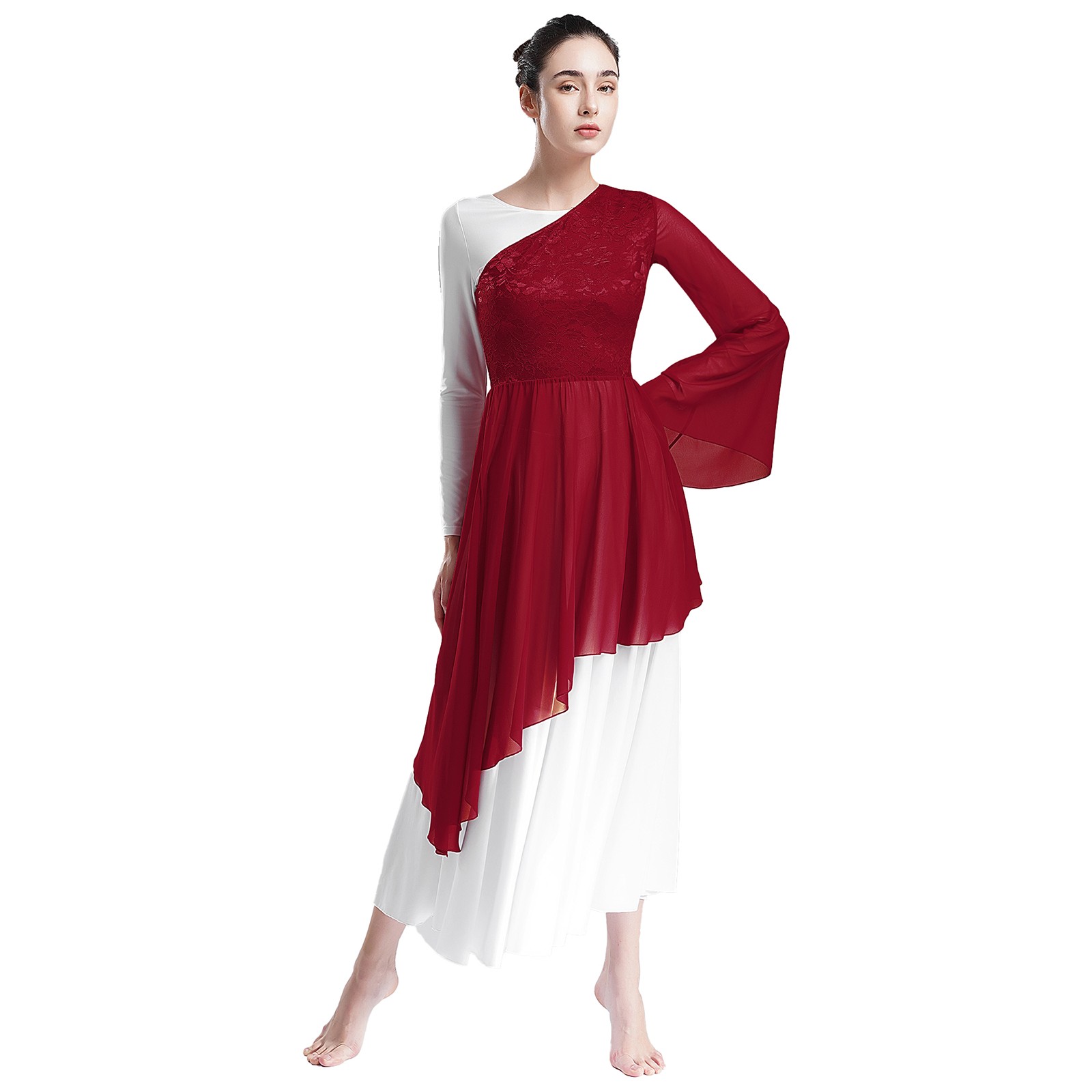 как выглядит Women Liturgical Praise Dance Costume Tunic Asymmetrical Worship Dress Dancewear фото