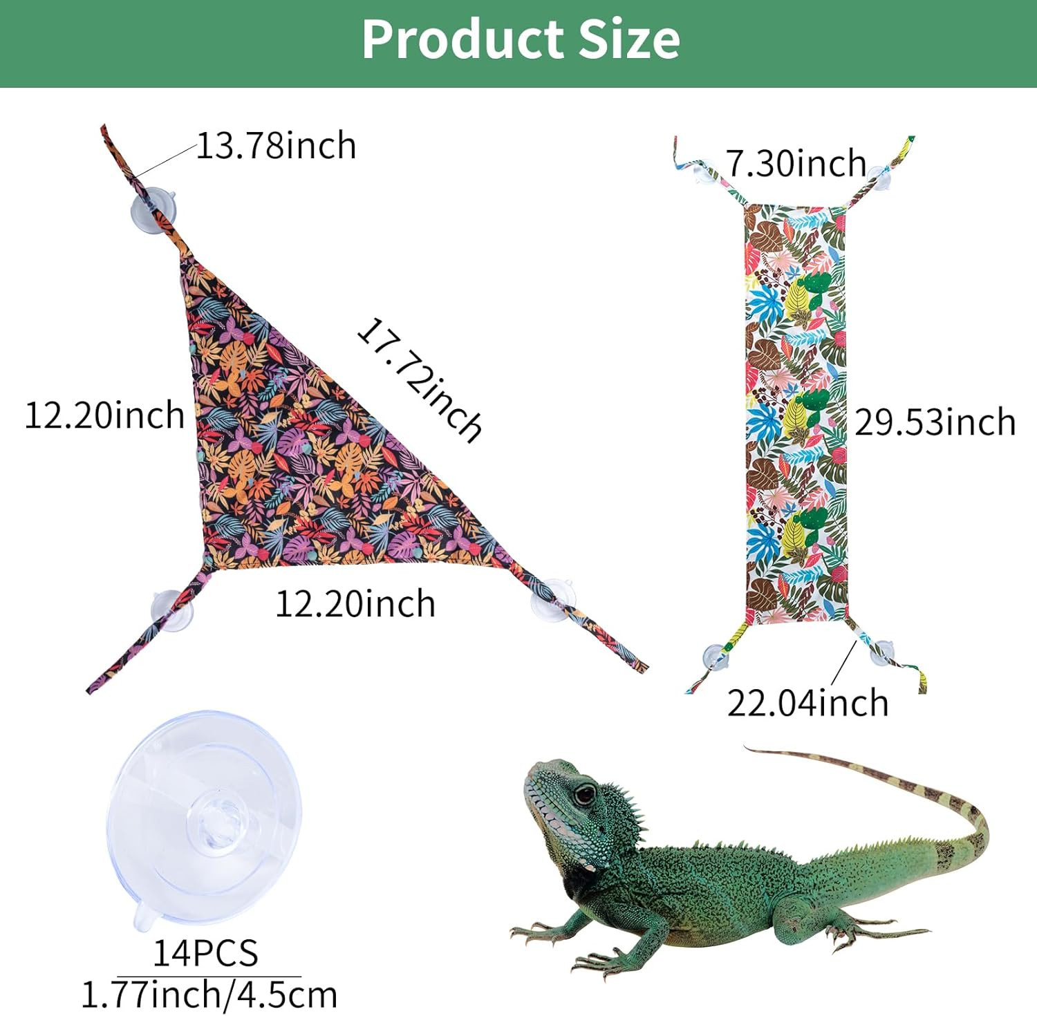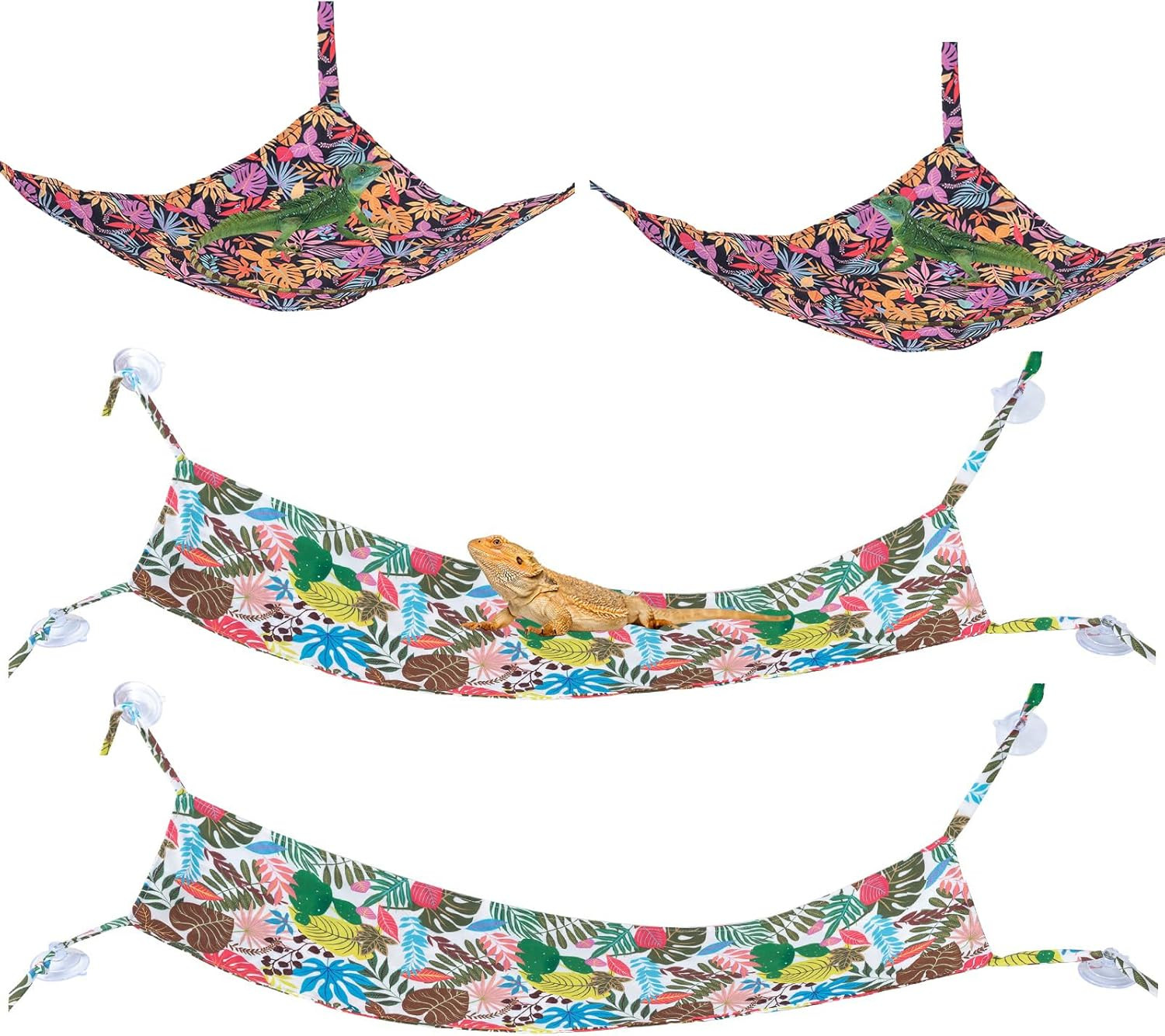 4 Pack Bearded Dragon Hammock with Suction Cup, Reptile Hammocks Lounger Suitabl