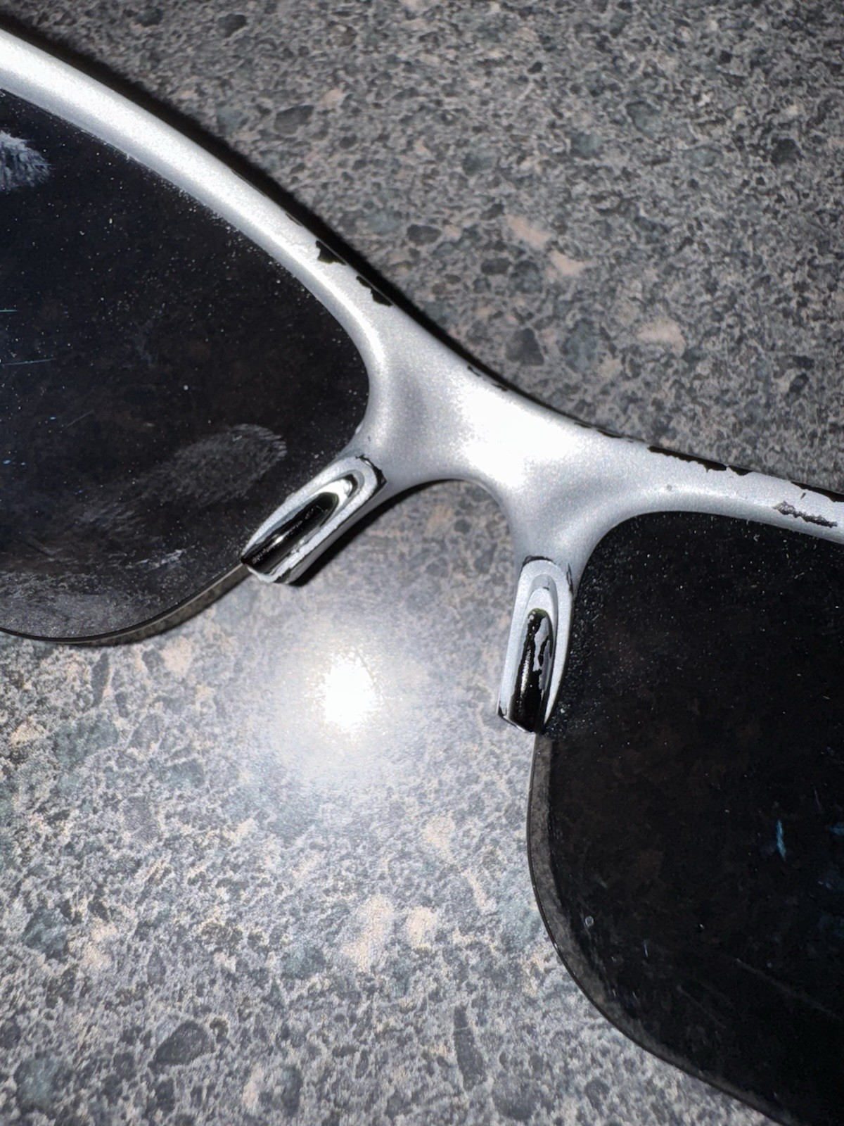как выглядит Oakley Flak Jacket 1.0 Silver Black Reflective Blue Lenses Pre Owned FLAWS фото