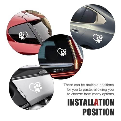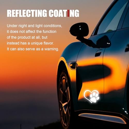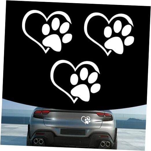 3 PCS Heart Dog Paw Car Decals, 4.33 L 3.66 W Reflective Print Love Car