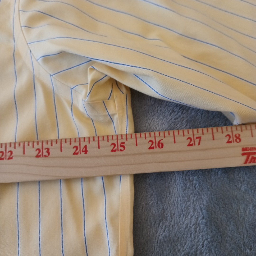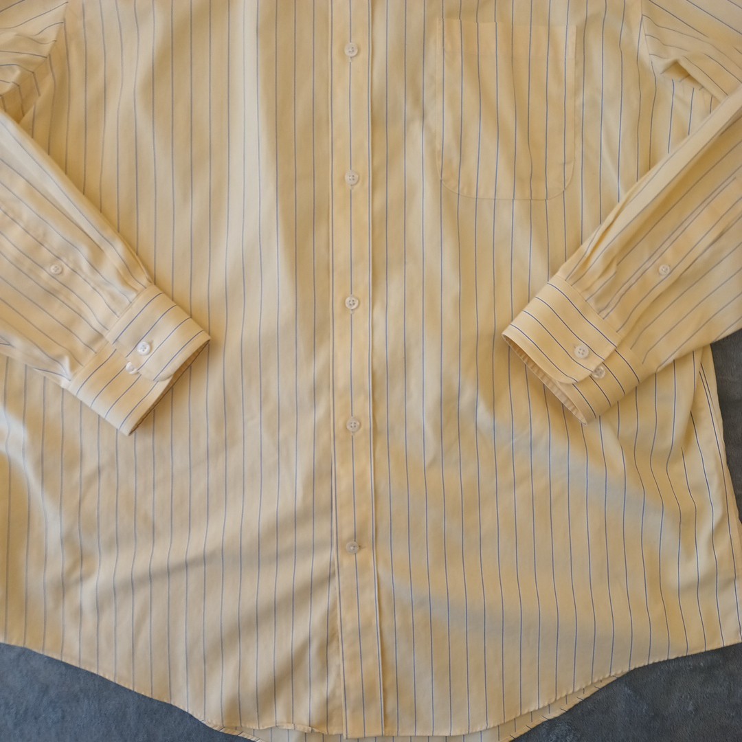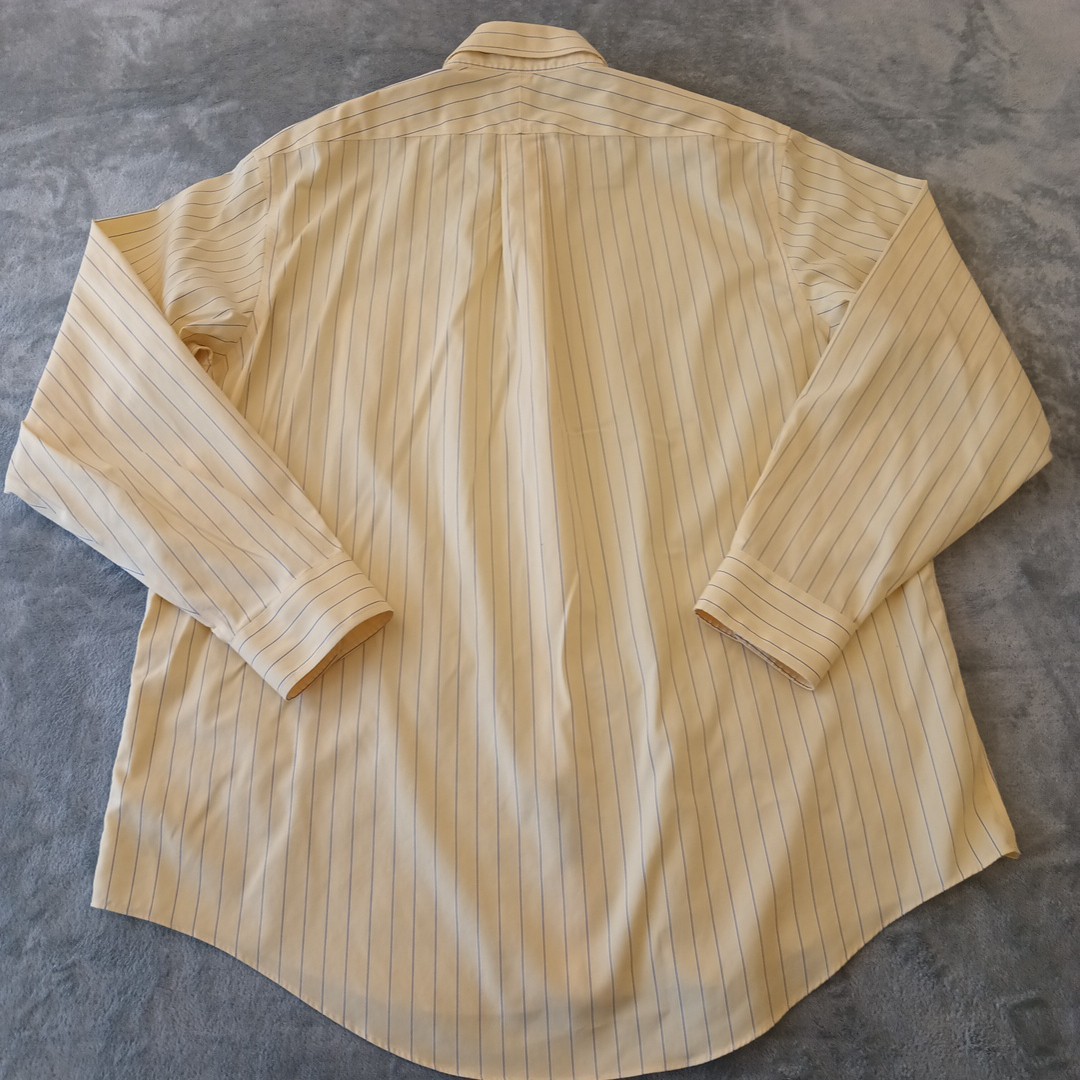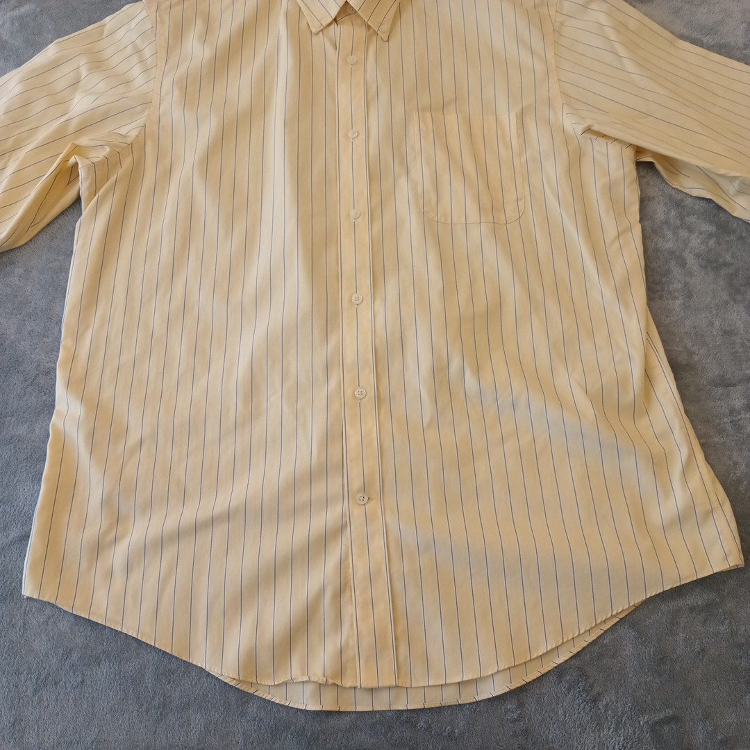 как выглядит Lands End Shirt Mens Size 17 Yellow Blue Striped Long Sleeve Button Down фото