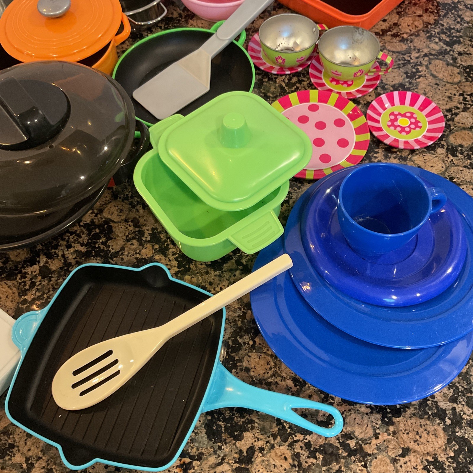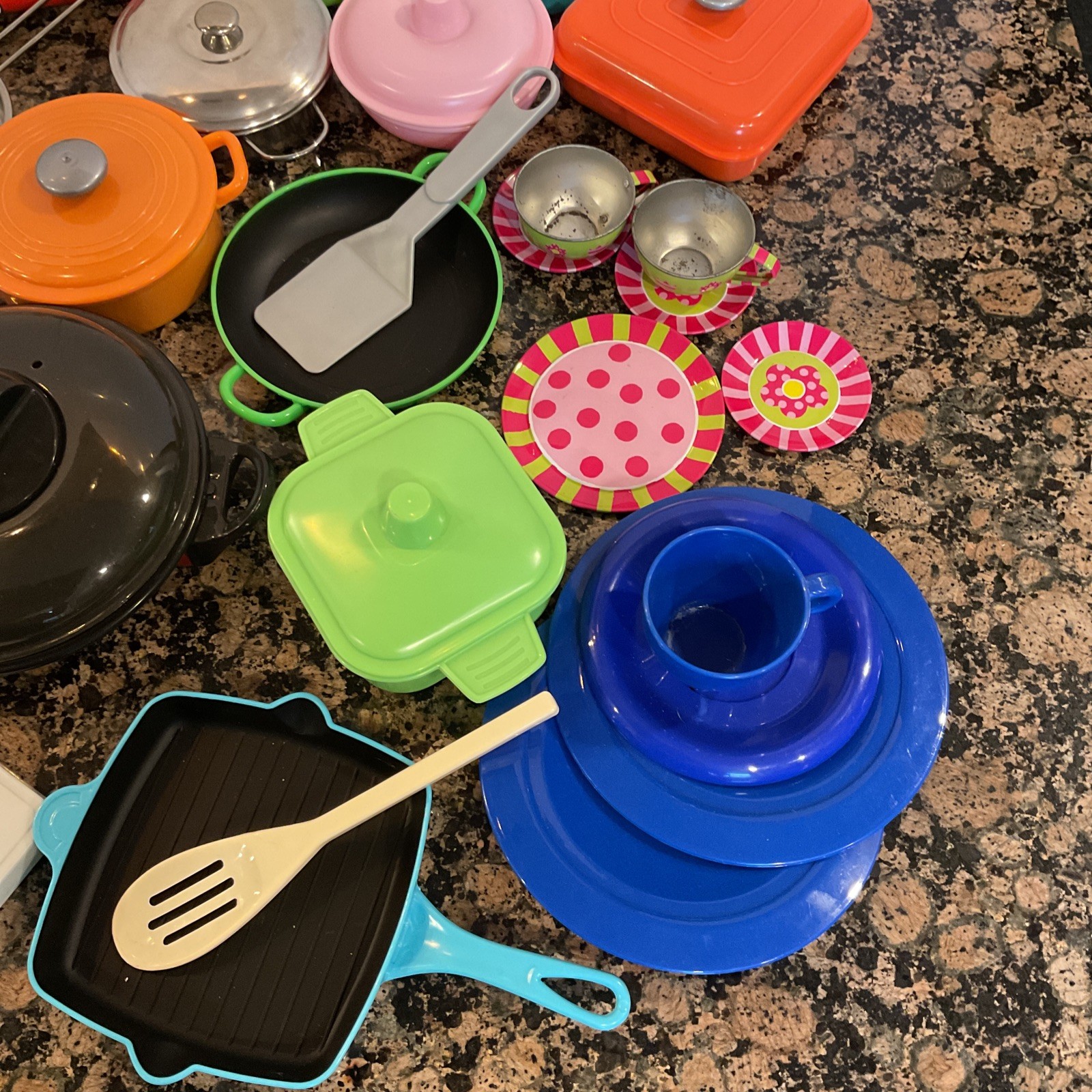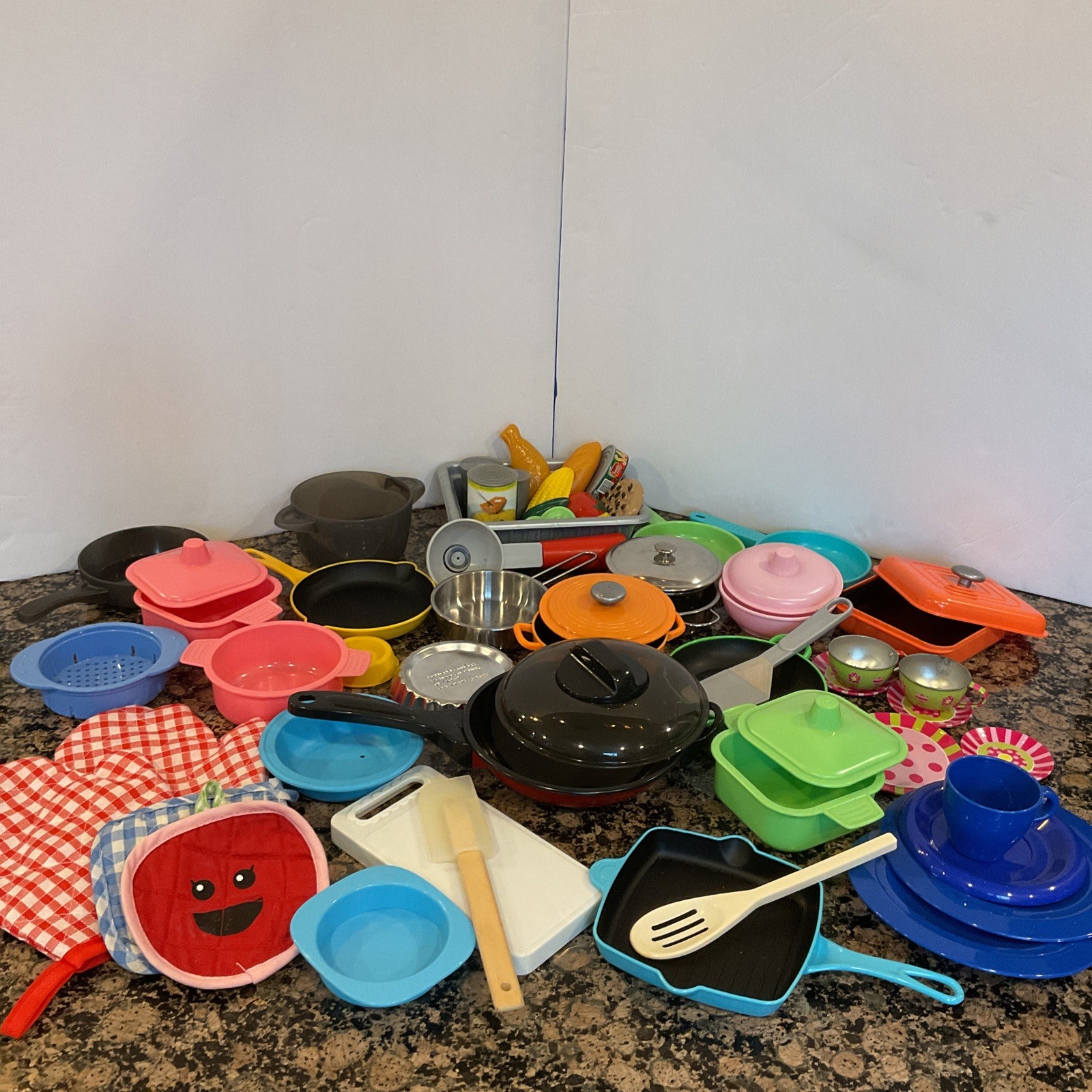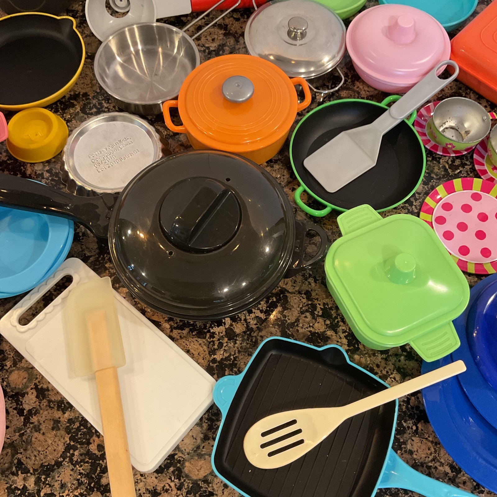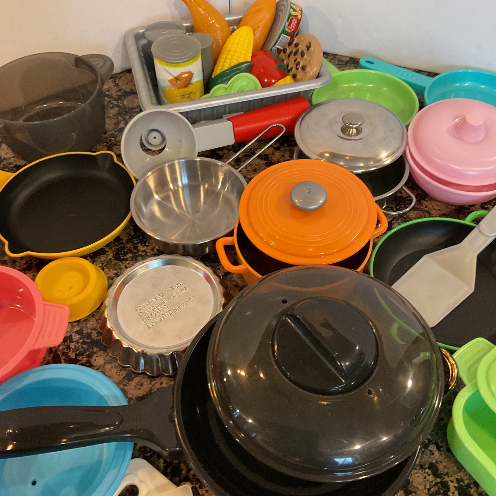 Toy Kitchen Pots Pans Play set Incomplete Mismatch 50 Pieces Pretend Play Lot