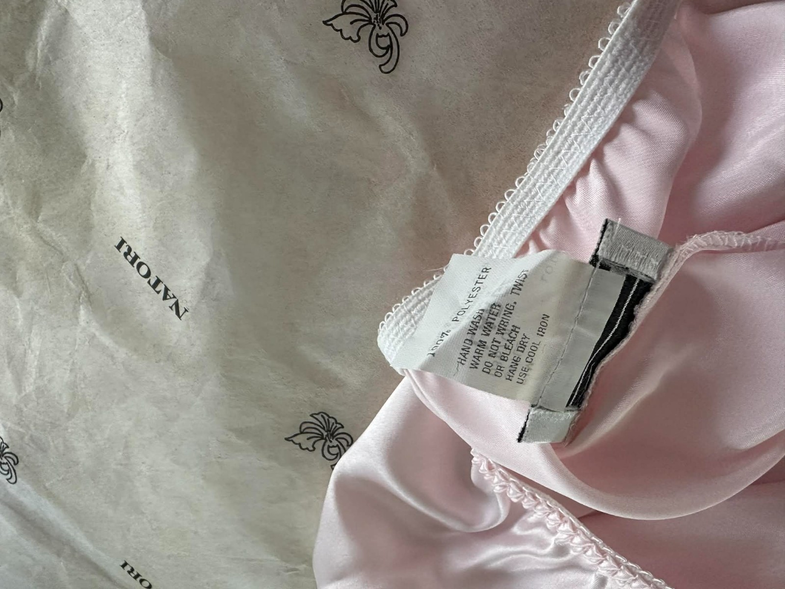 как выглядит NWOT NATORI SILKY PINK HALF SLIP IN LARGE WITH TISSUE AND BOX фото