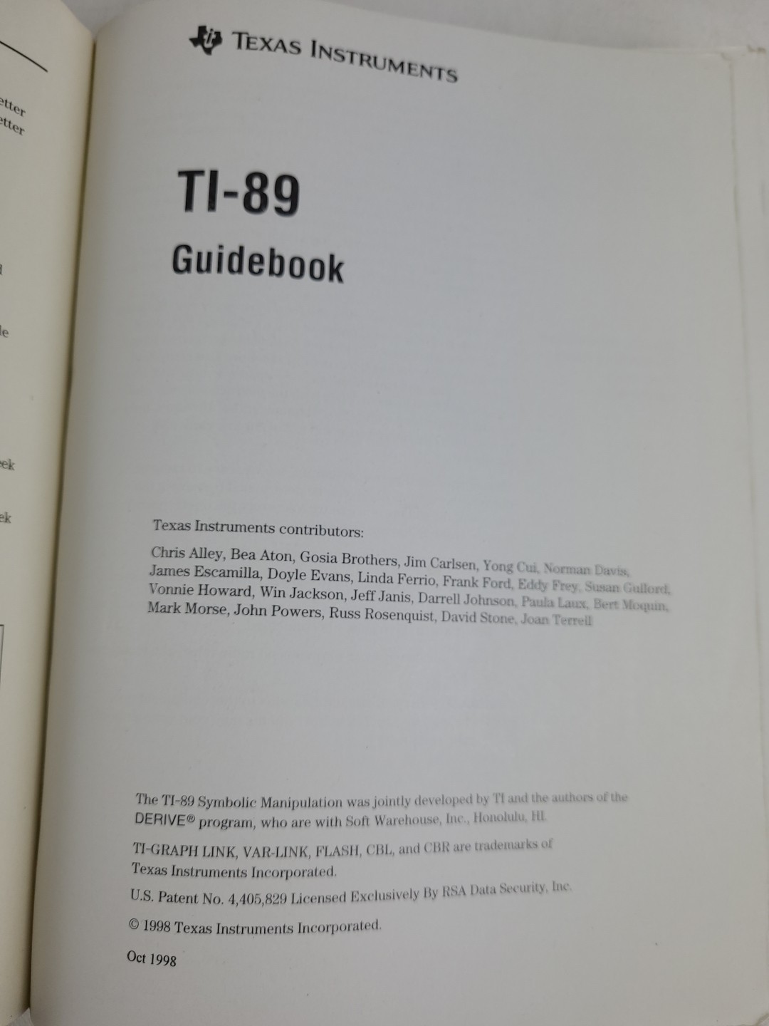 • TI-89 Texas Instruments 89 Calculator Instruction Manual Only Guidebook 1998