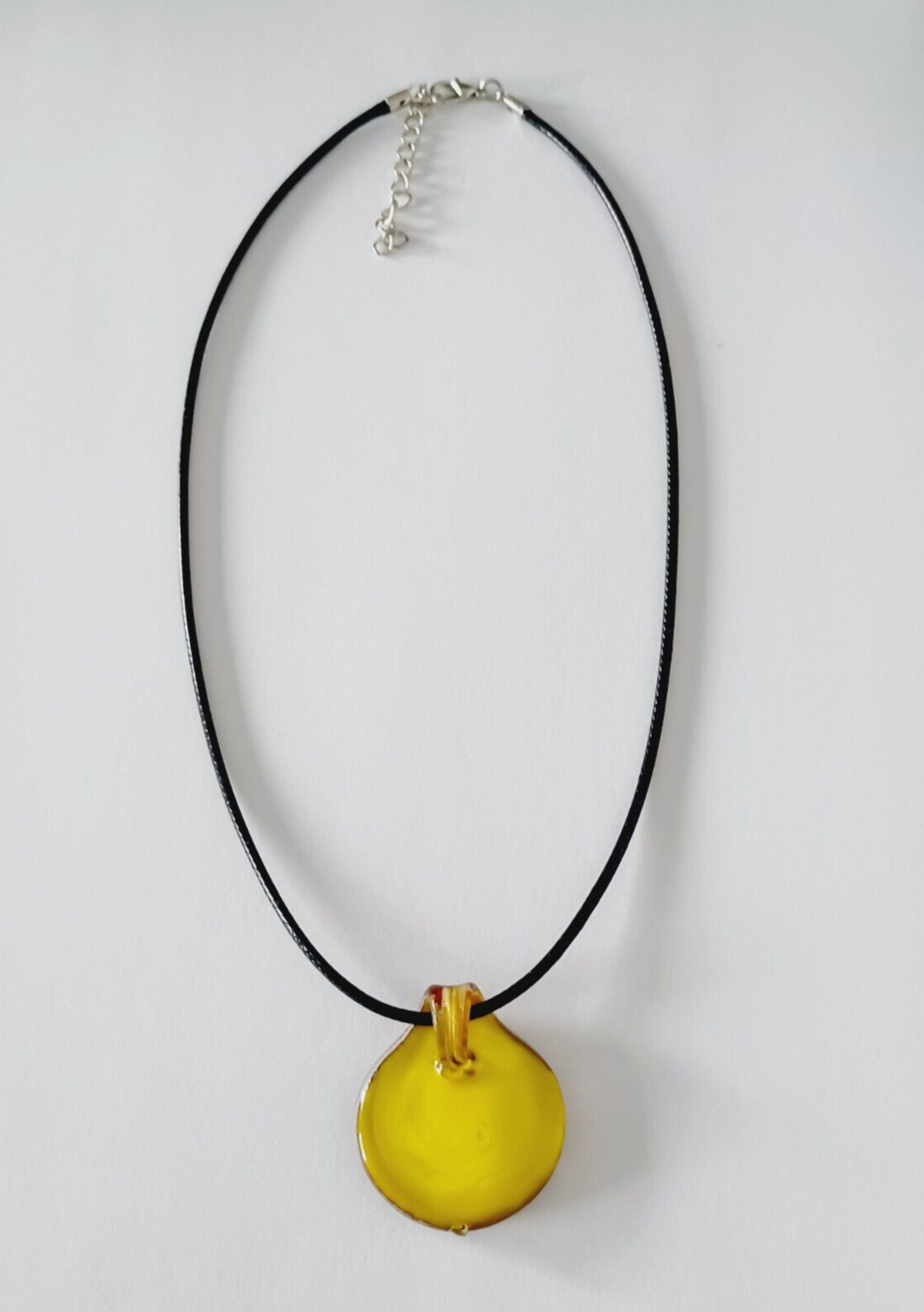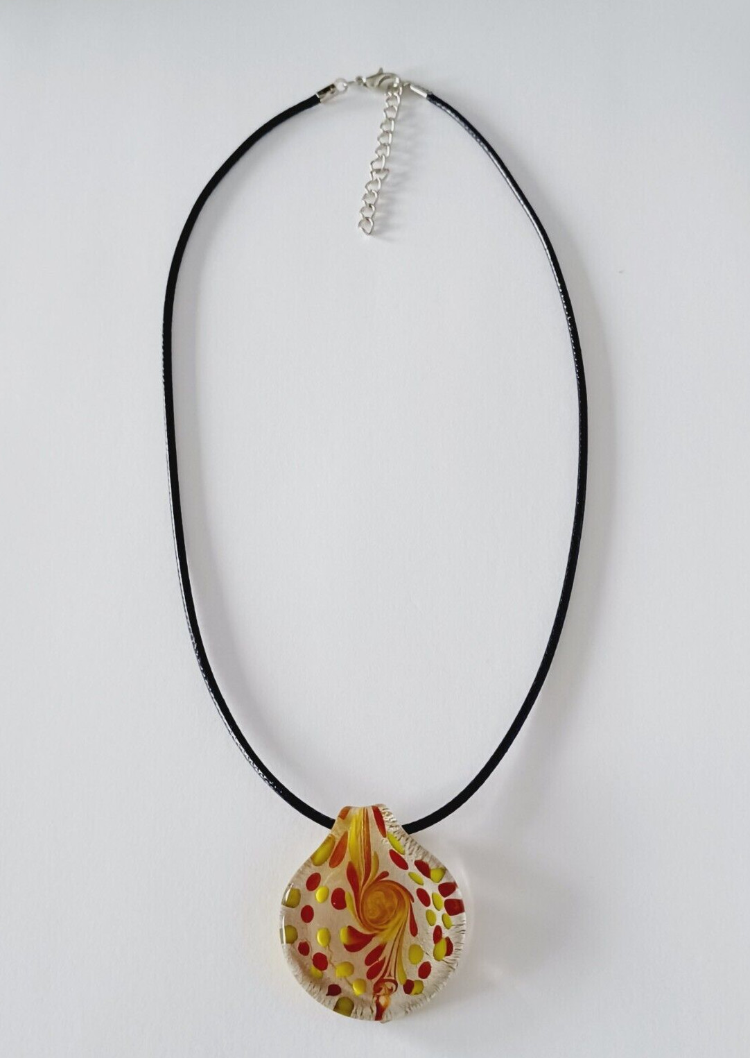 как выглядит Clear Red Yellow Circle Glass Pendant on Black Cord Necklace фото