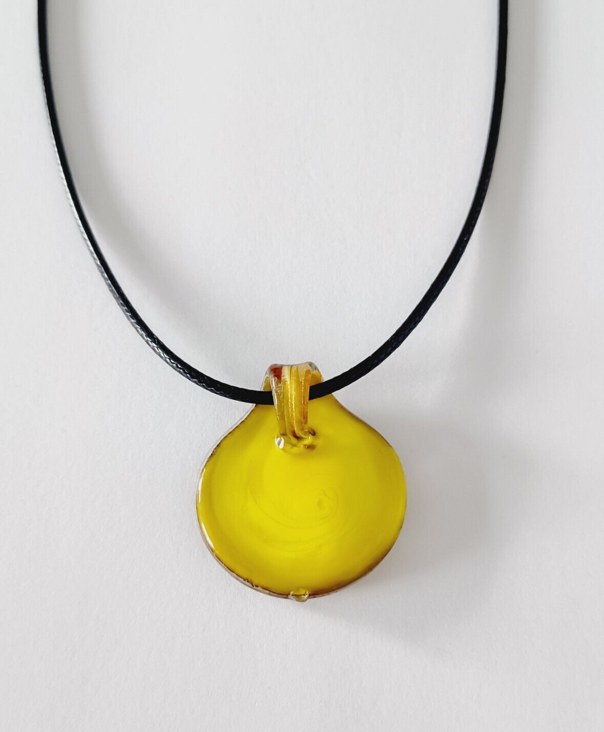 Clear Red Yellow Circle Glass Pendant on Black Cord Necklace