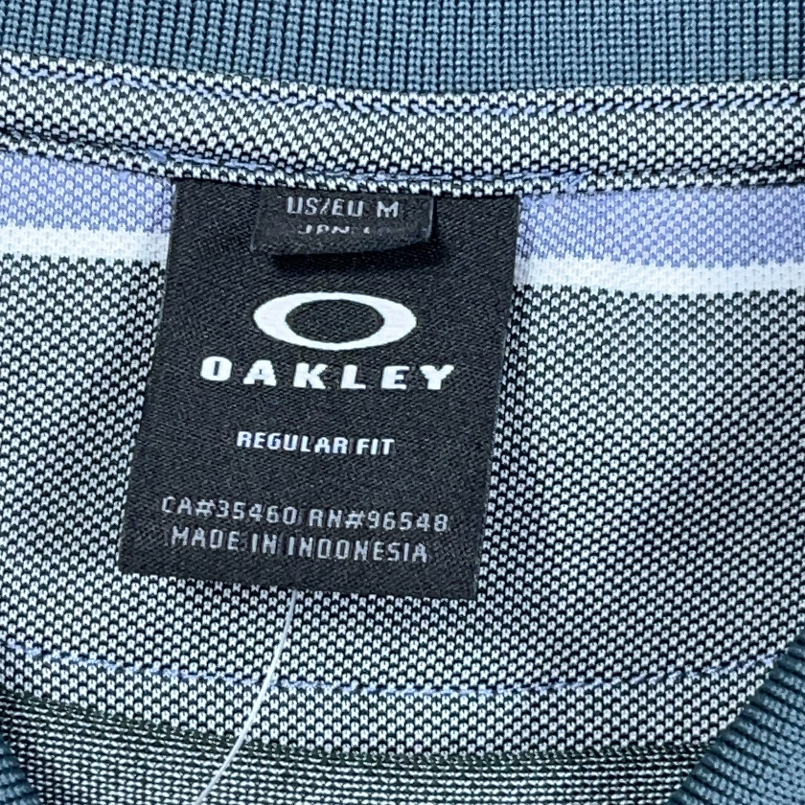 как выглядит Oakley Polo Shirt Men Medium Blue Gray Striped Performance Wicking Golf NWT фото