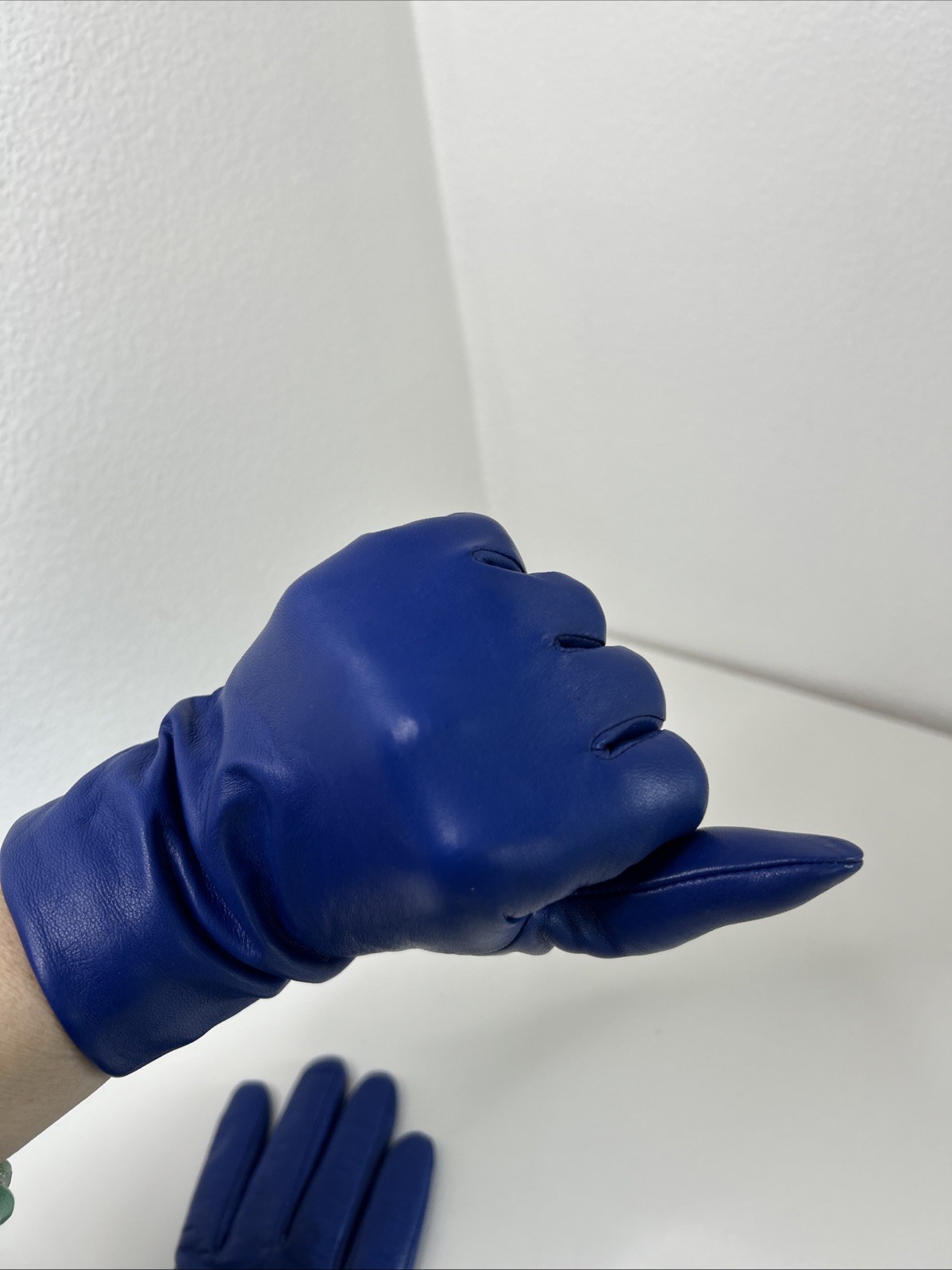 как выглядит Vintage Womens 6 1/2 Blue Leather Driving Gloves Cashmere Lined, Philippines фото