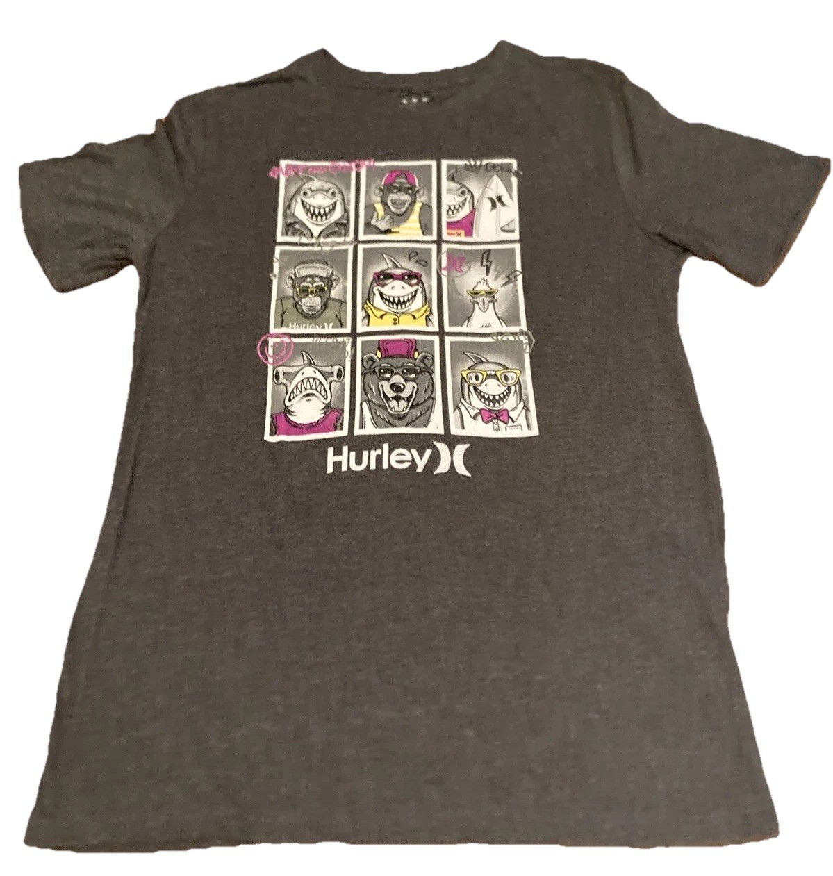 как выглядит Hurley Gray Graphic T-Shirt And Russell Black Elastic Shorts Kids Size XL 14/16 фото