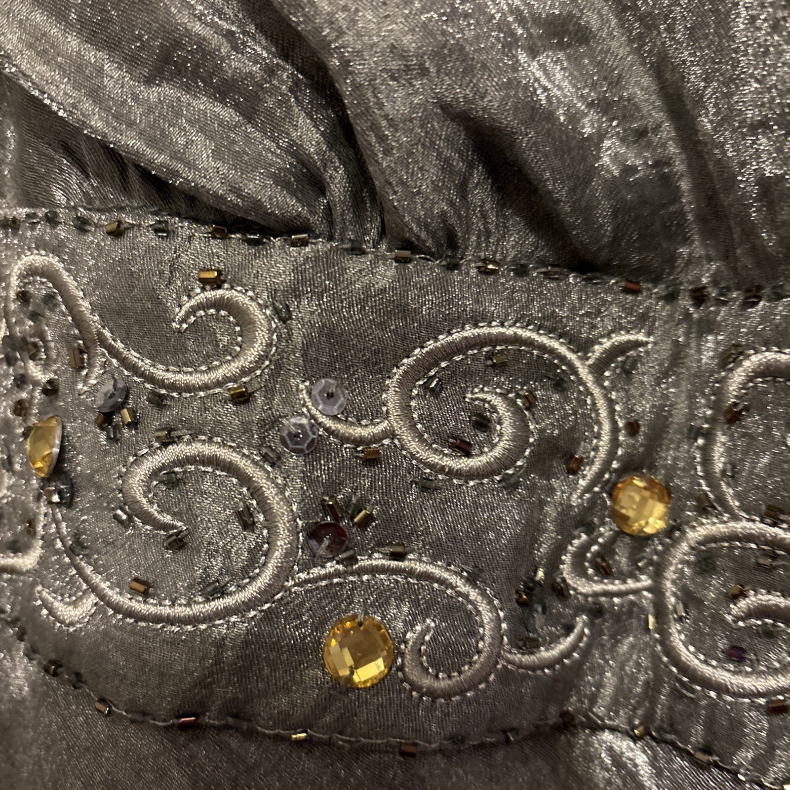 R M Richards Size 16W Silver/Grey Metallic Gown 7 Tiers V Neck Sequin/Rhinestone