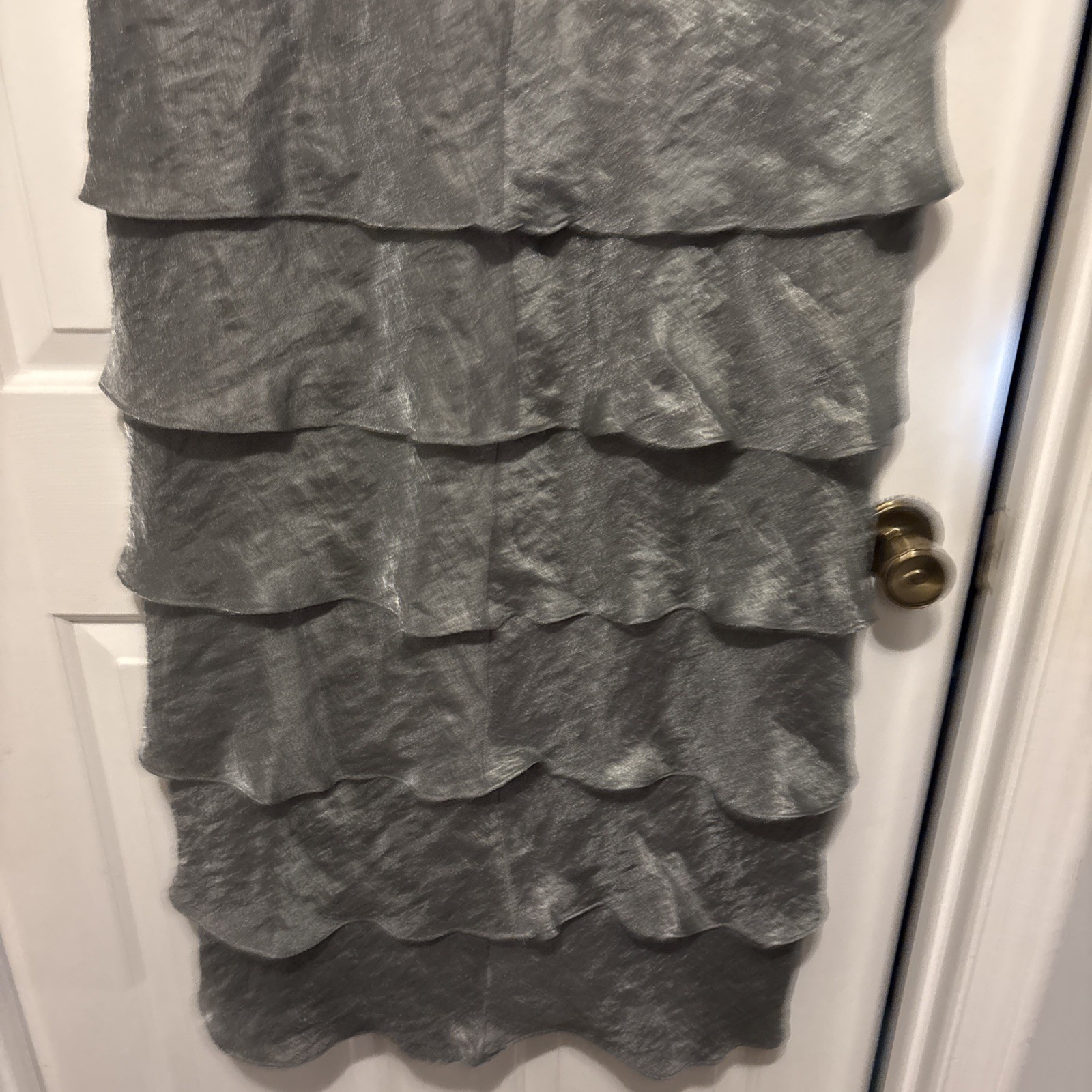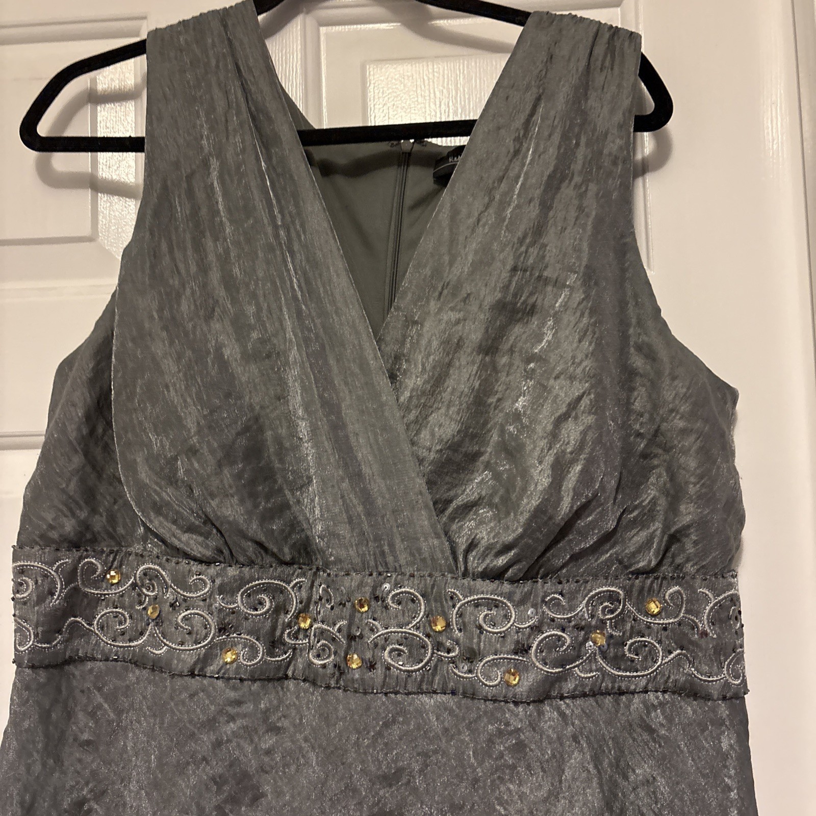 как выглядит R M Richards Size 16W Silver/Grey Metallic Gown 7 Tiers V Neck Sequin/Rhinestone фото