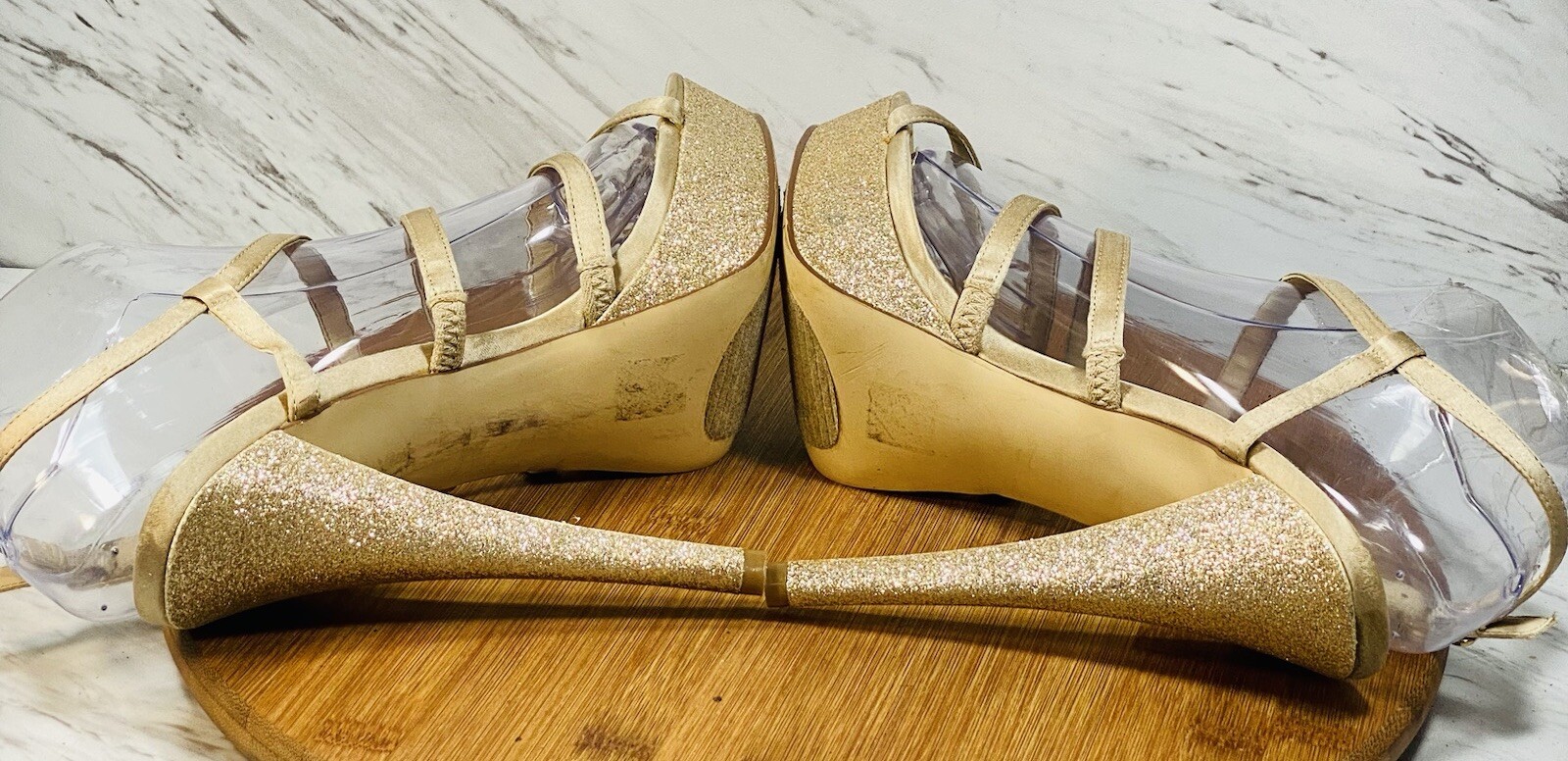 как выглядит Nine West Gold Glitter platform Stiletto Ankle 6" Heels Sz 9 фото