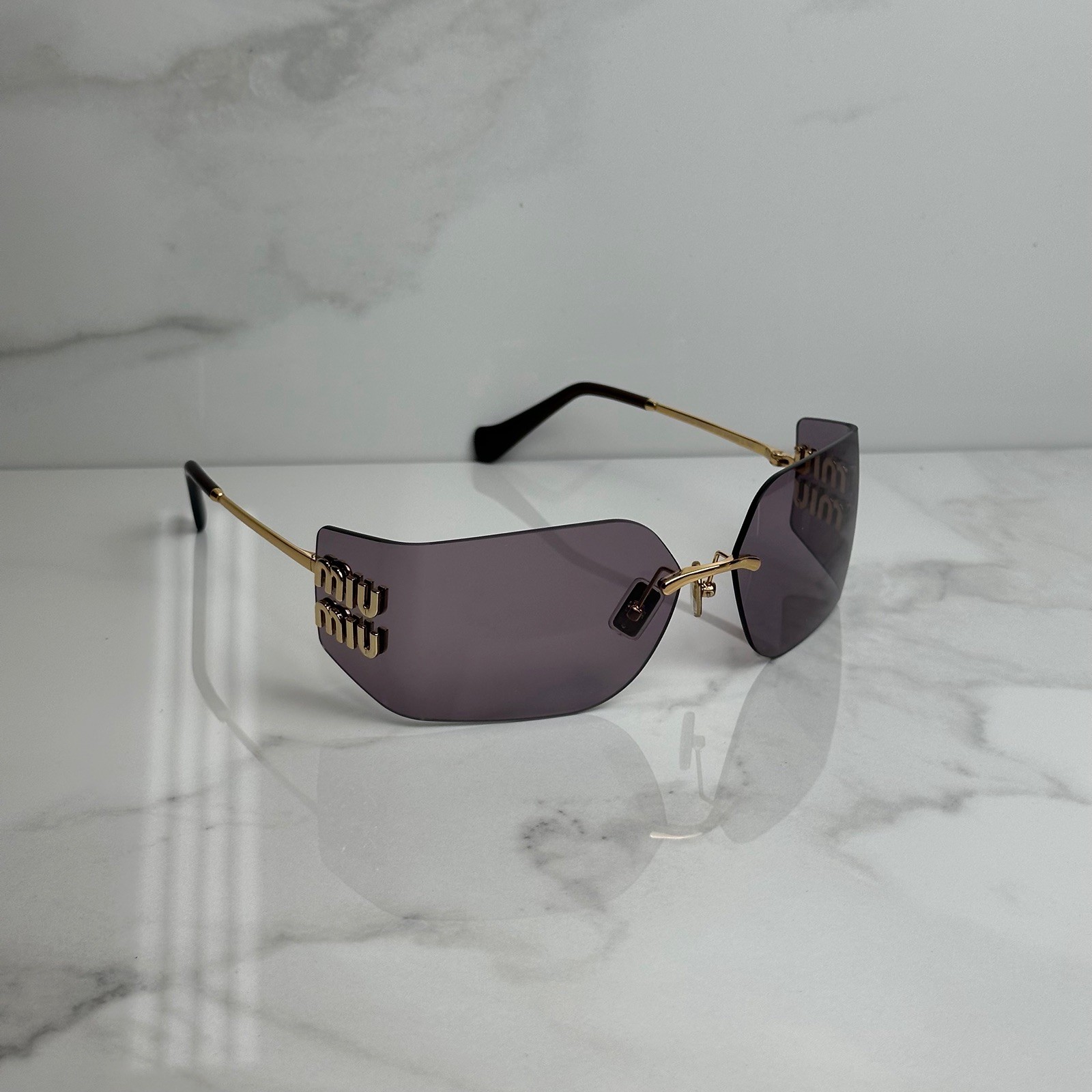 как выглядит Miu Miu Sunglasses MU 54YS Gold light purple 5AK0/6I NEW фото