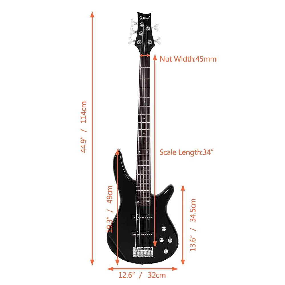 Glarry GIB Electric 5 String Right -Handed Basswood Bass Guitar Black