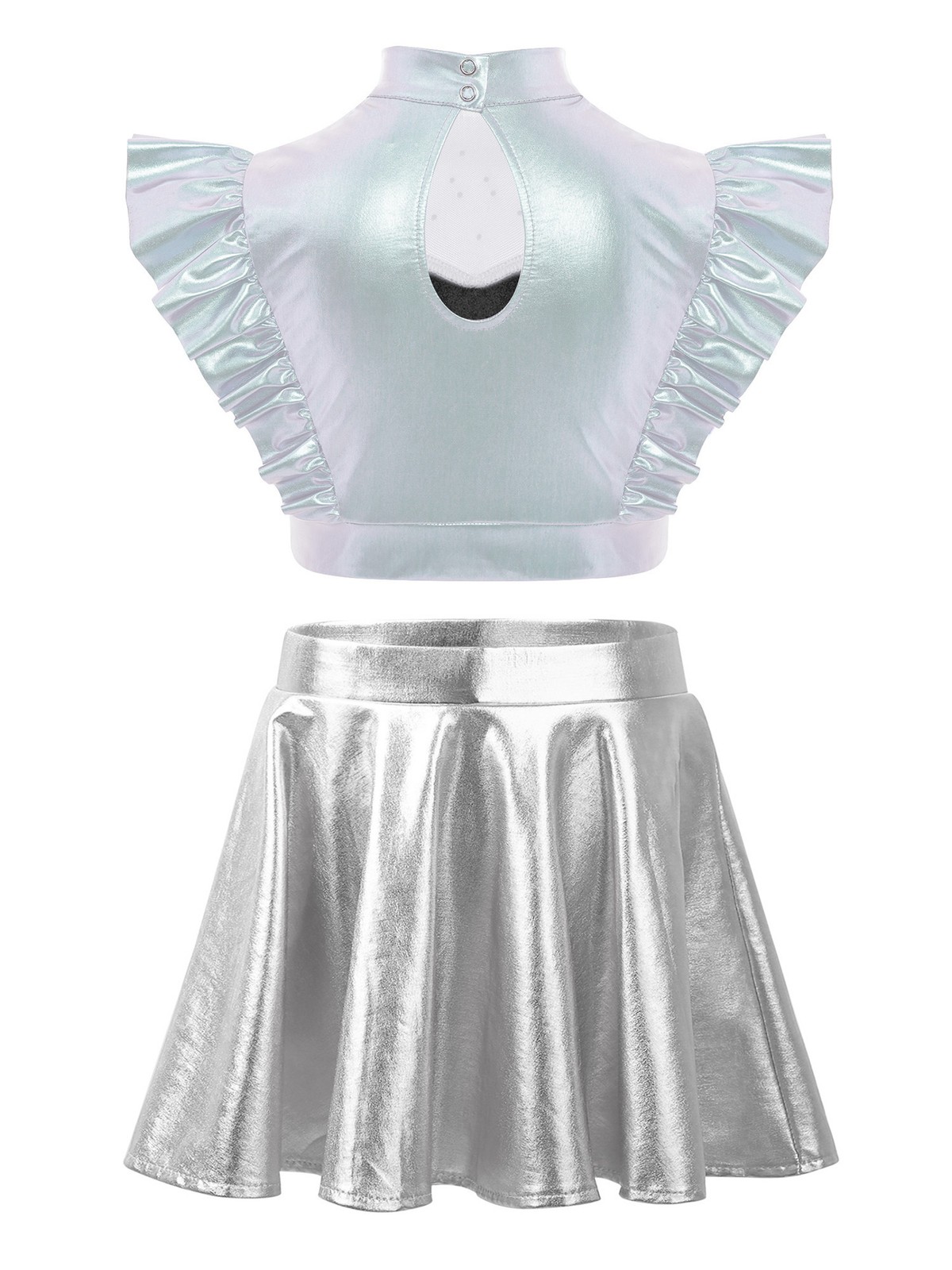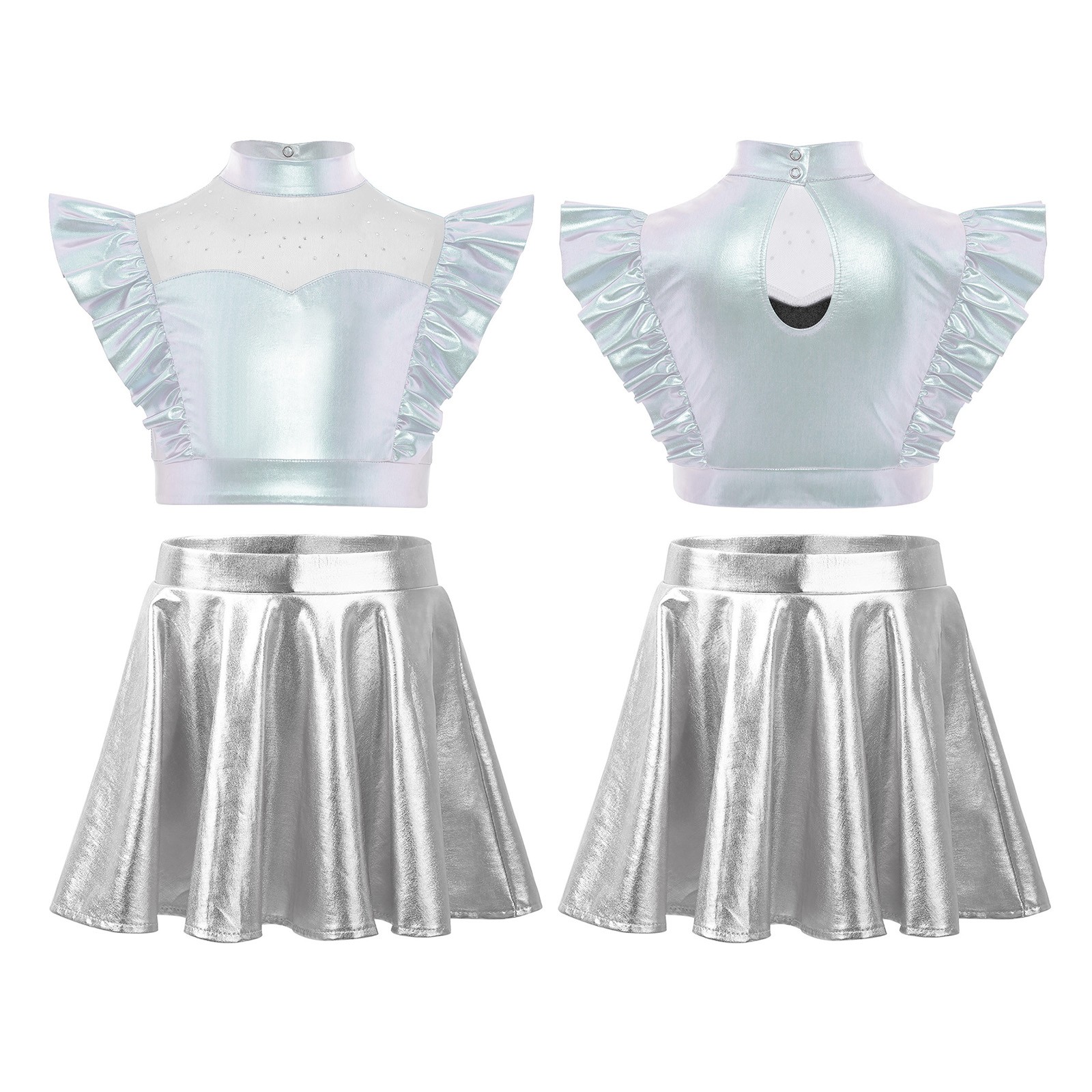 как выглядит Kids Dance Outfits Ruffle Sleeve Crop Top A-line Skirt Popular Singer Dancewear фото