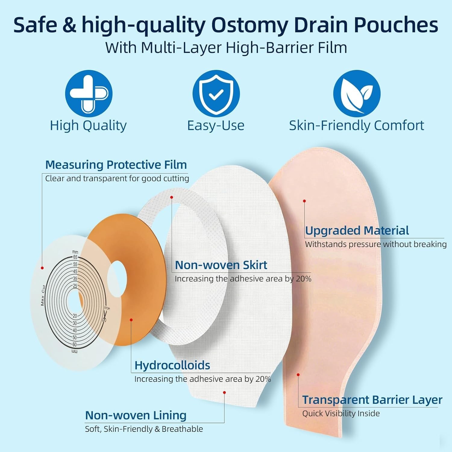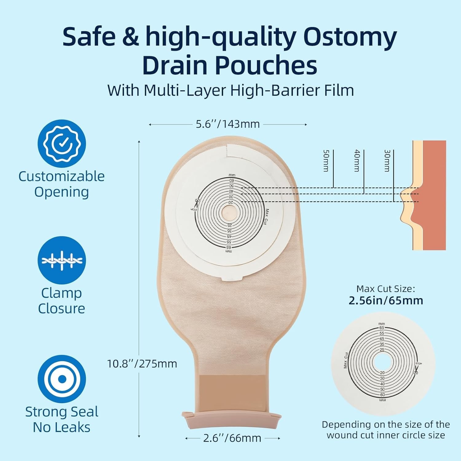 40 PCS Colostomy Bags Leak-Proof One Piece Ostomy Bag Ostomy Supplies Cut to Fit