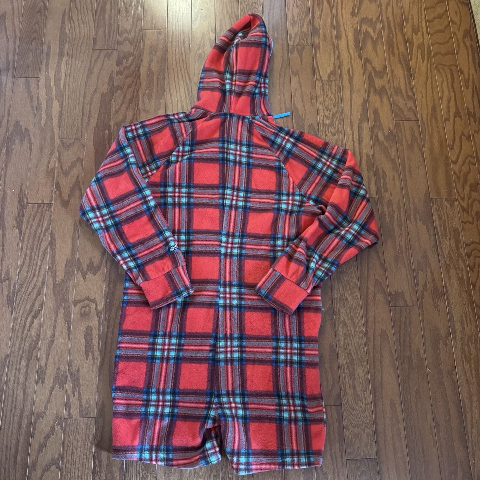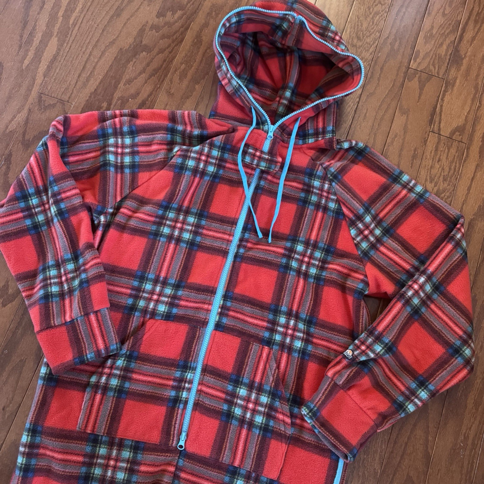 как выглядит Chubbies Plaid Fleece Romper Hooded Zip One Piece Red Blue Lounge Men L фото