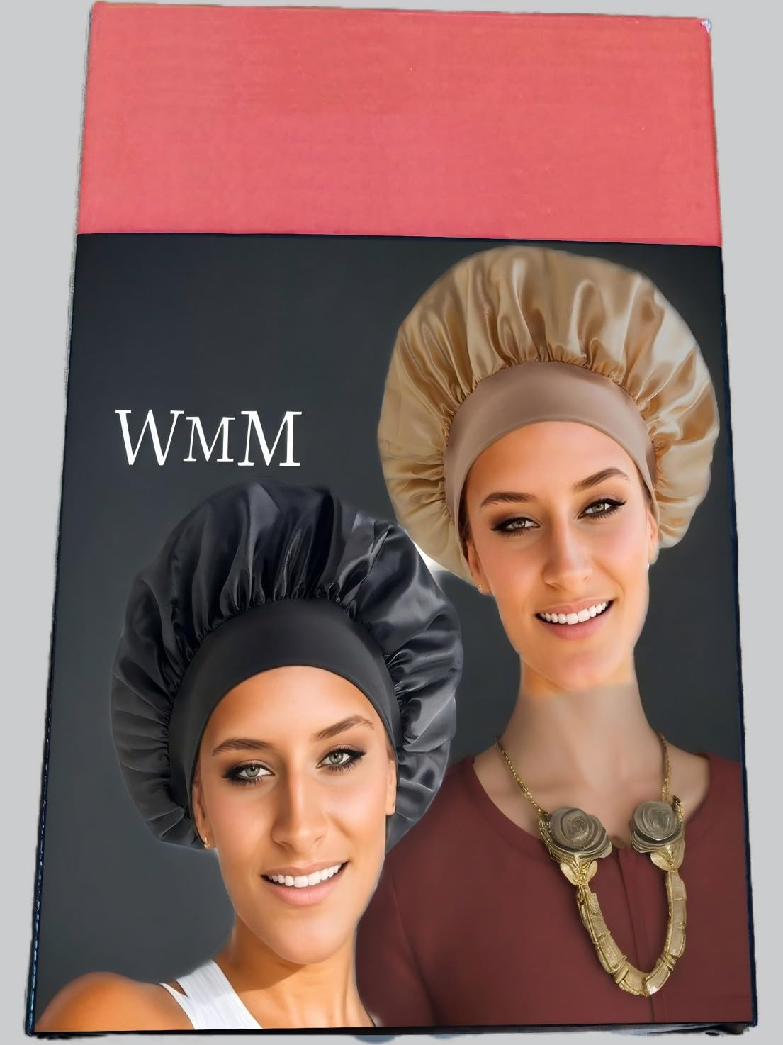 2Pcs Satin Hair Bonnets,Silk Bonnet for Sleeping, Soft Elastic Band Silk Sleep C