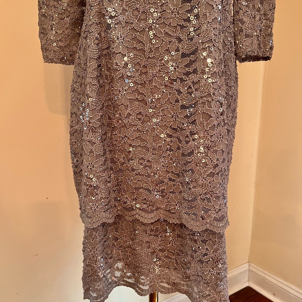 Alex Evenings Taupe Lace and Sequin Dress