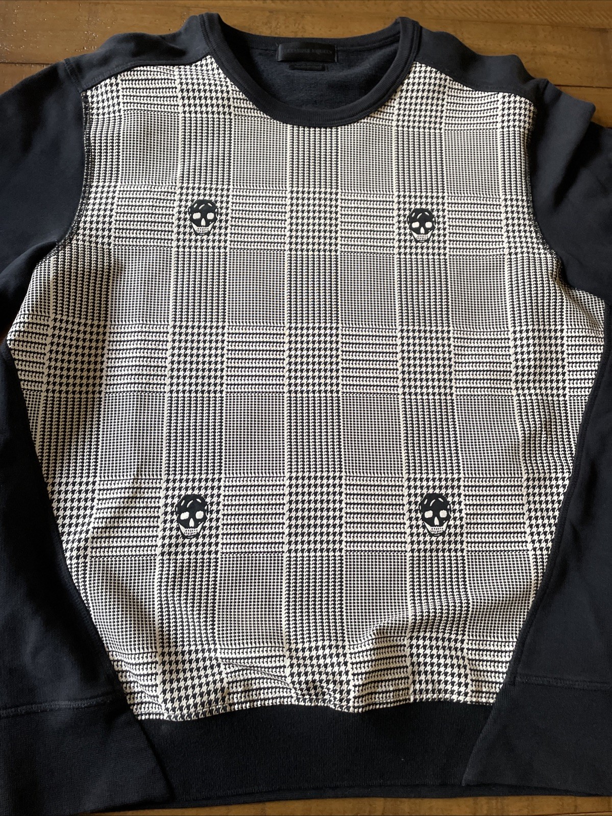 Alexander McQueen McQ Jacquard Houndstooth Sweatshirt Black Designer Unisex L